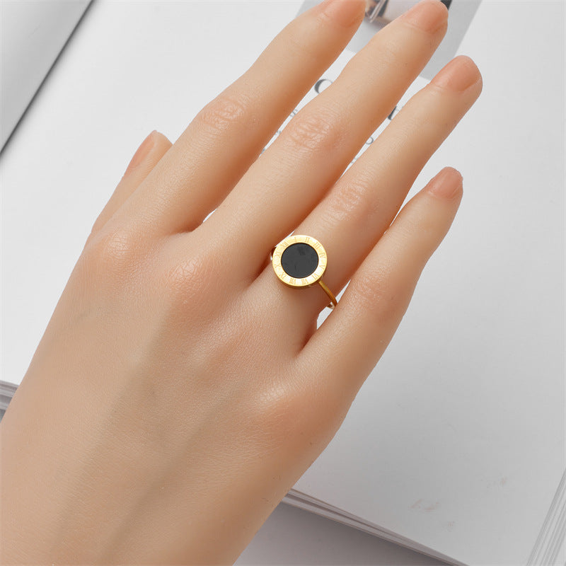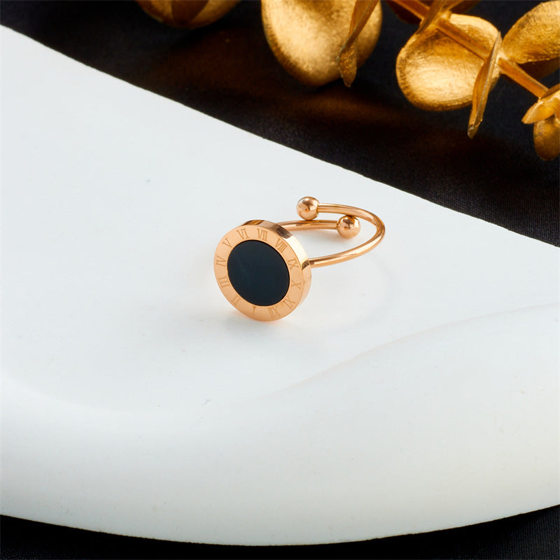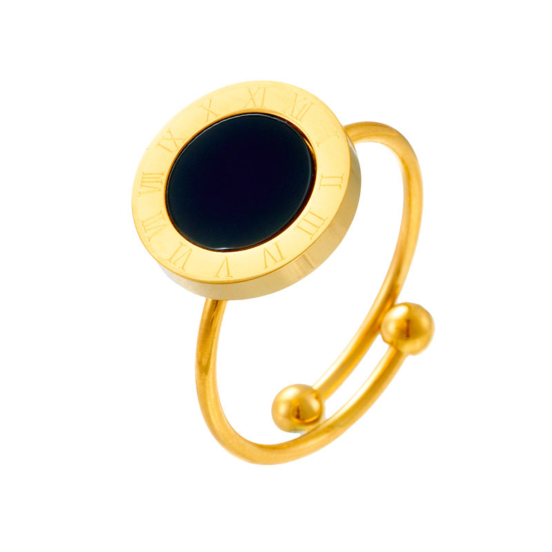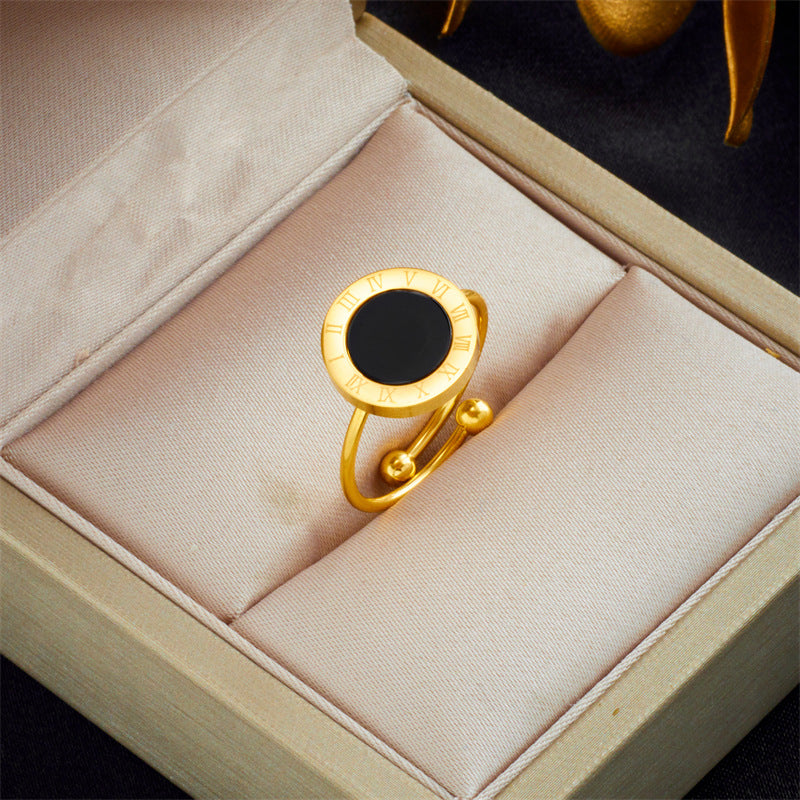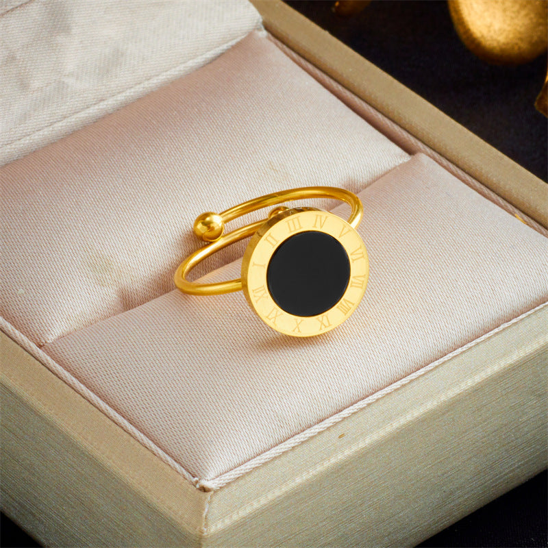 Simple Style Roman Numerals Open Adjustable Titanium Steel Gold Plated Ring