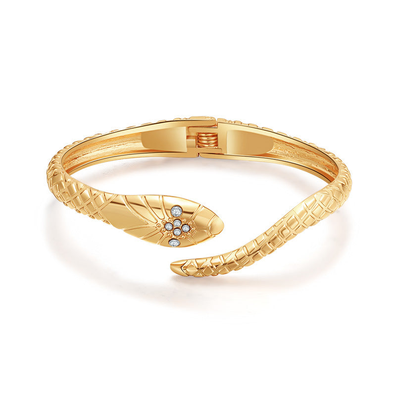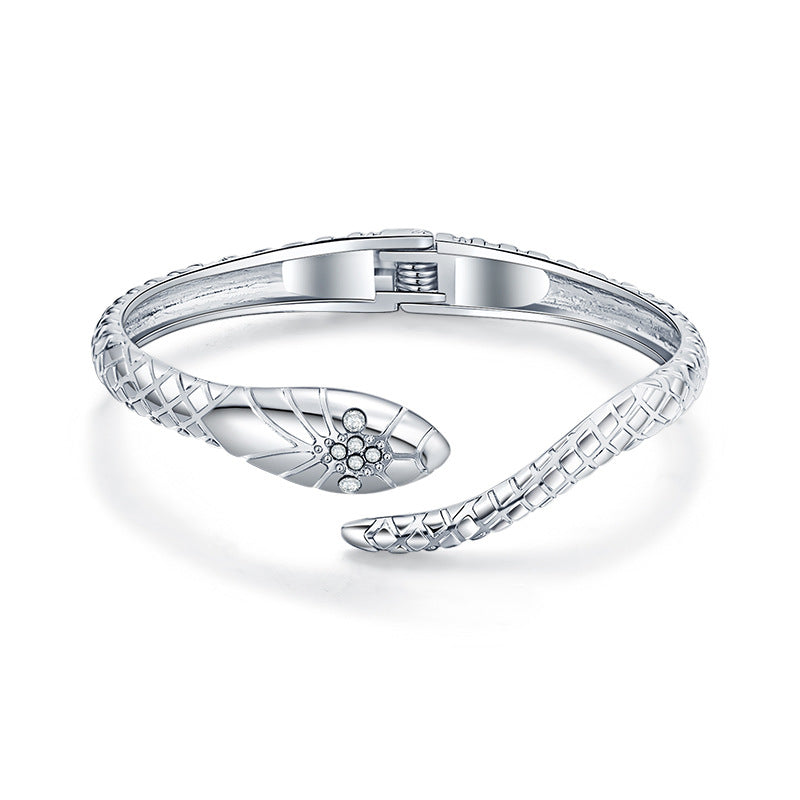 Simple Snake Design Metal Rhinestone Women's Bangle Bracelet