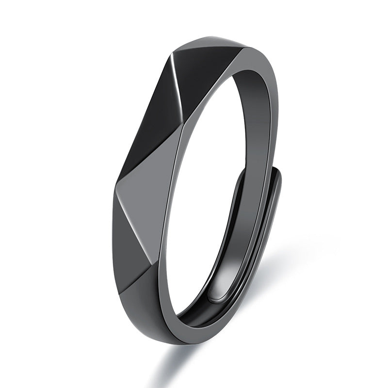 Geometric Minimalist Copper Plated Couple Rings - Black and White Diamond Design