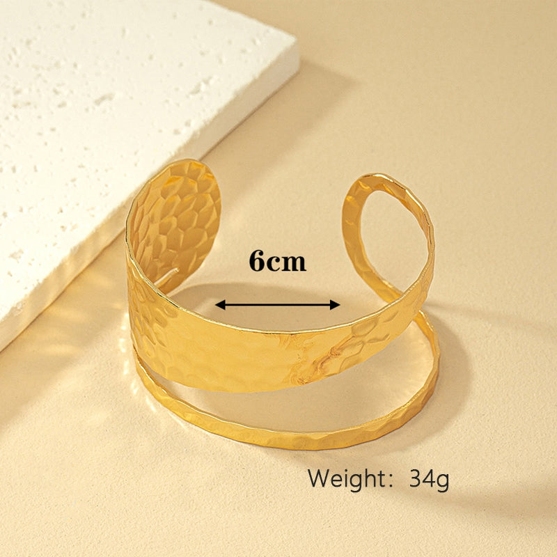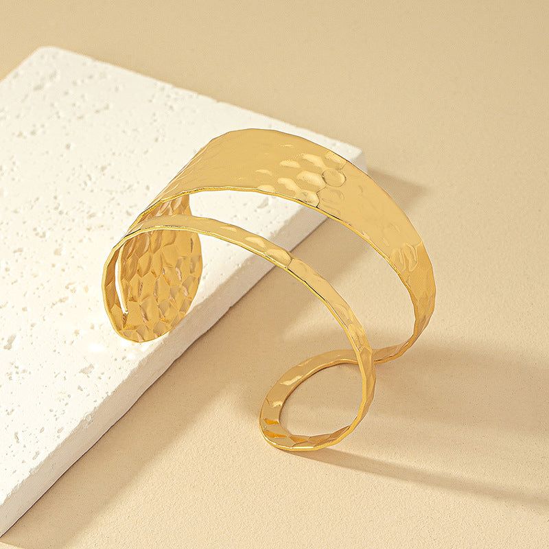 Simple Style Asymmetrical 14k Gold Plated Women's Bangle with Unique Open Design