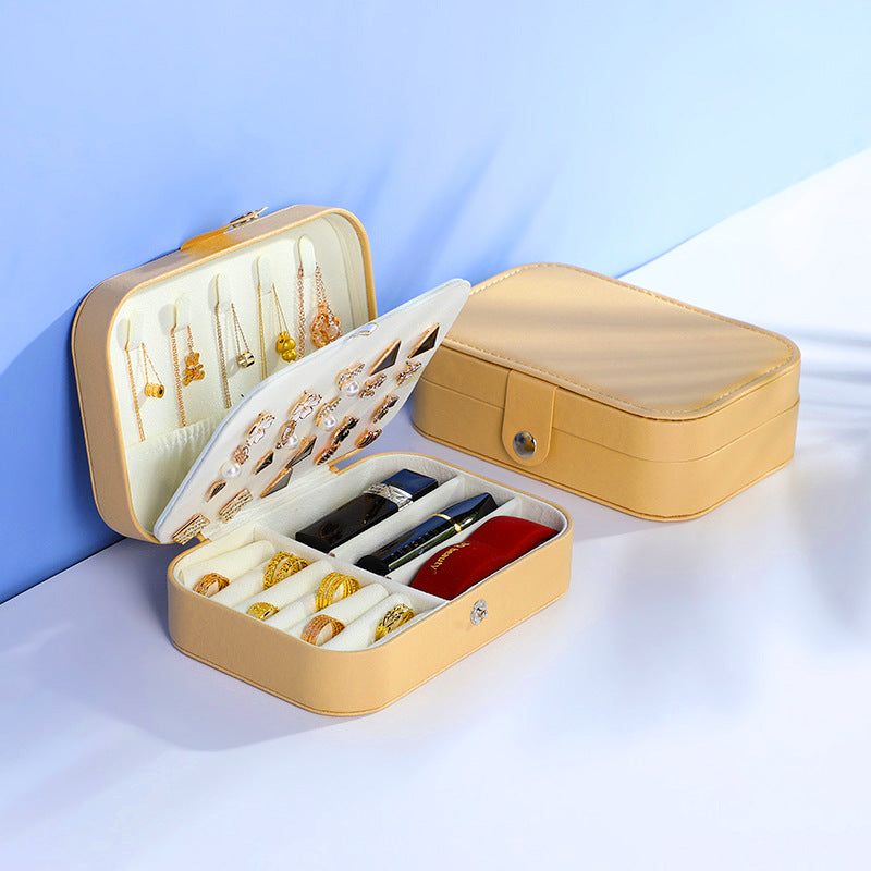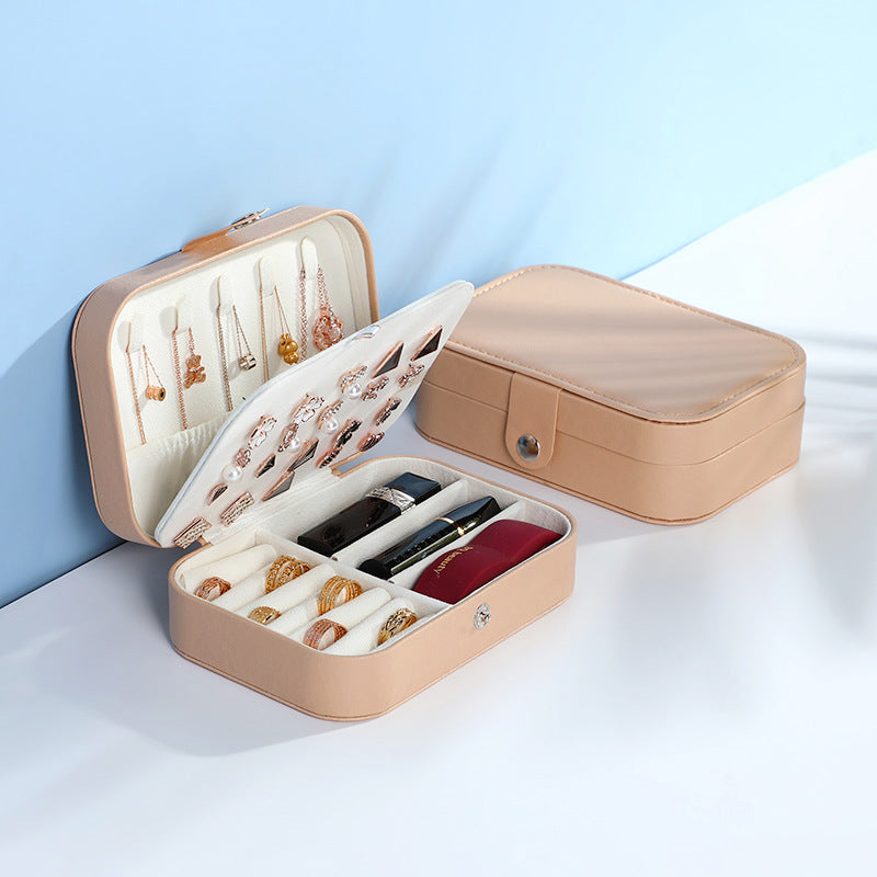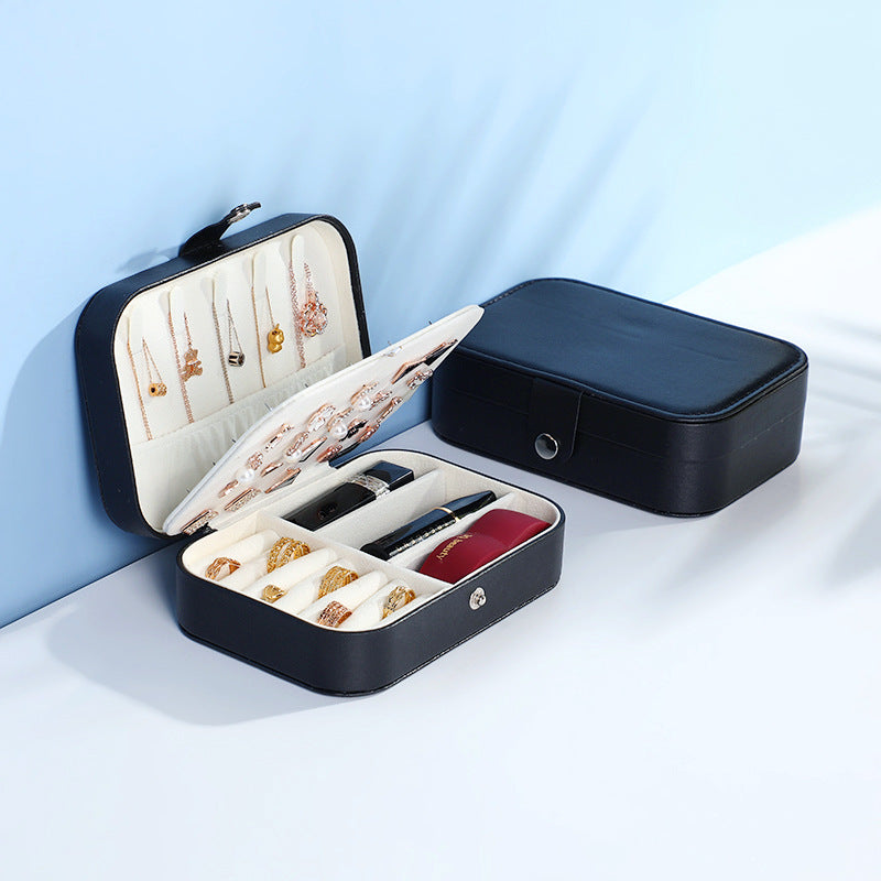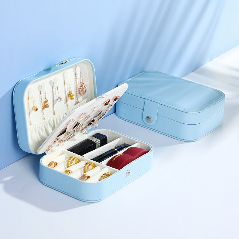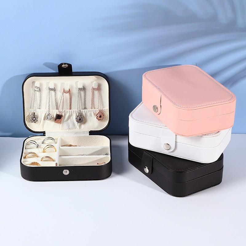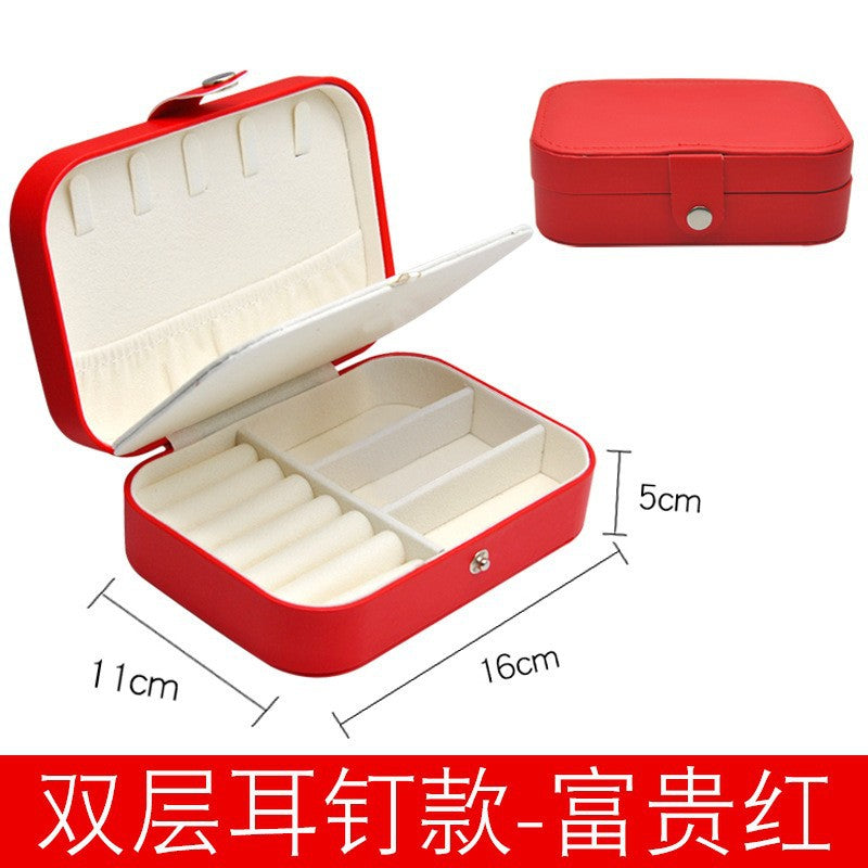 Simple Style PU Leather Double Layer Jewelry Box with Earring Holder - Multiple Colors Available