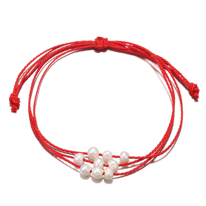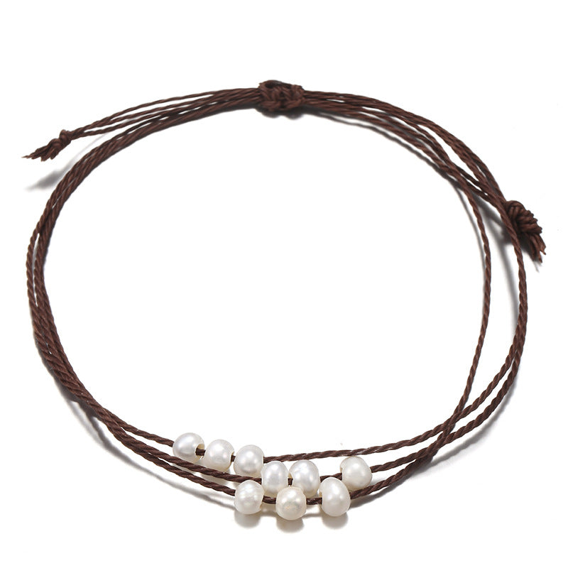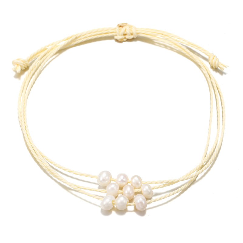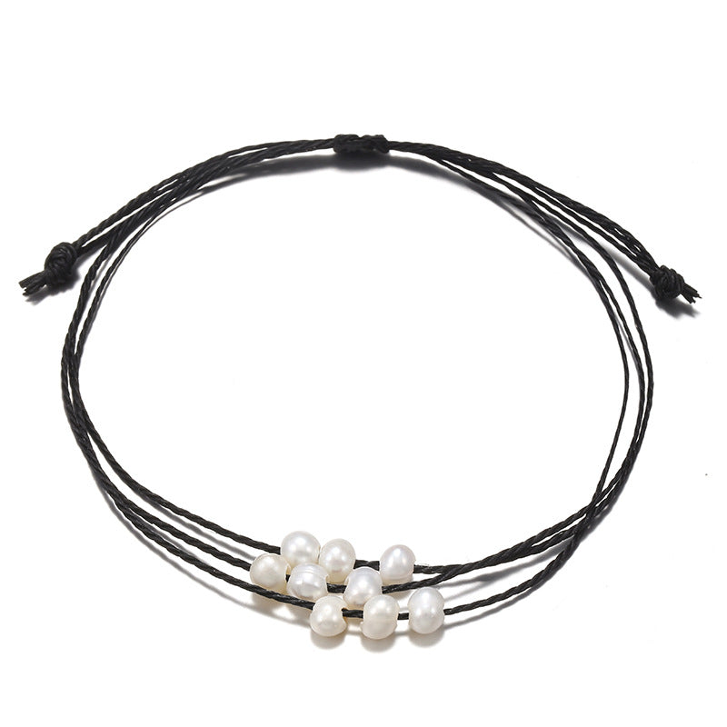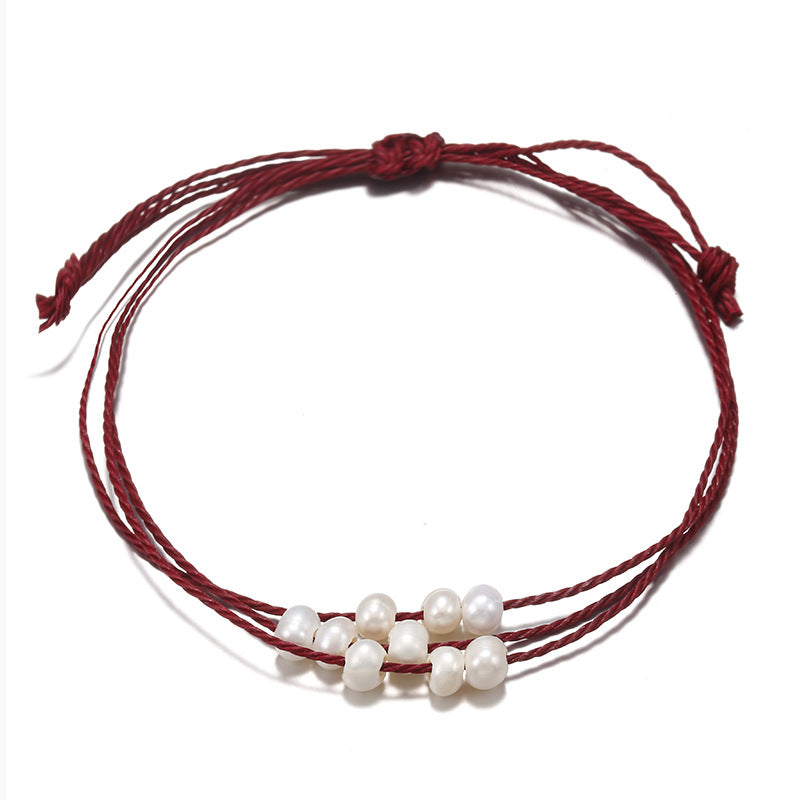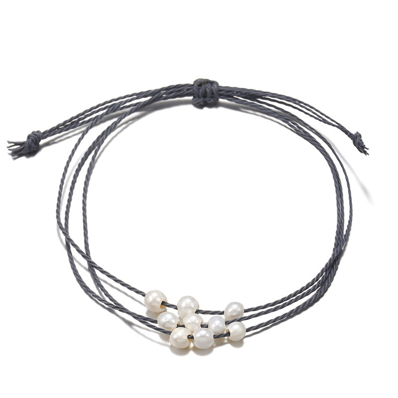 Simple Solid Color Rope Braid Women's Bracelet with Natural Pearl