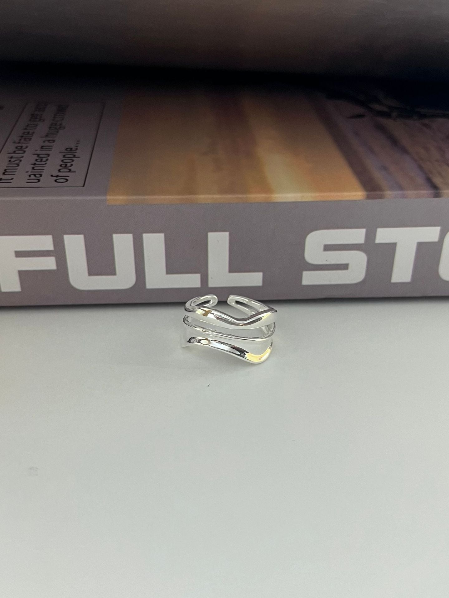 Minimalist Geometric Wave Open Ring in Gold Plated 925 Sterling Silver