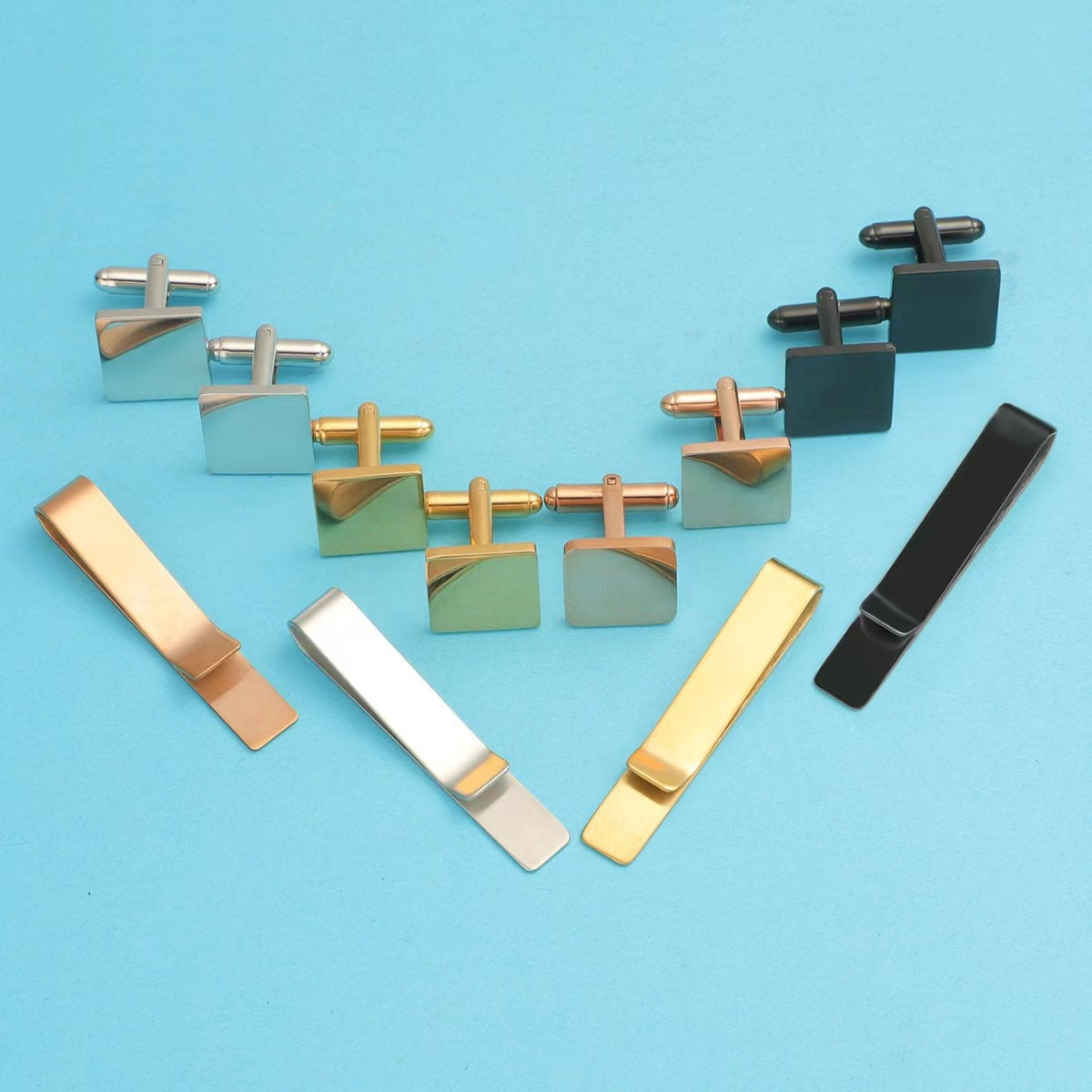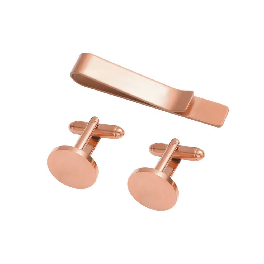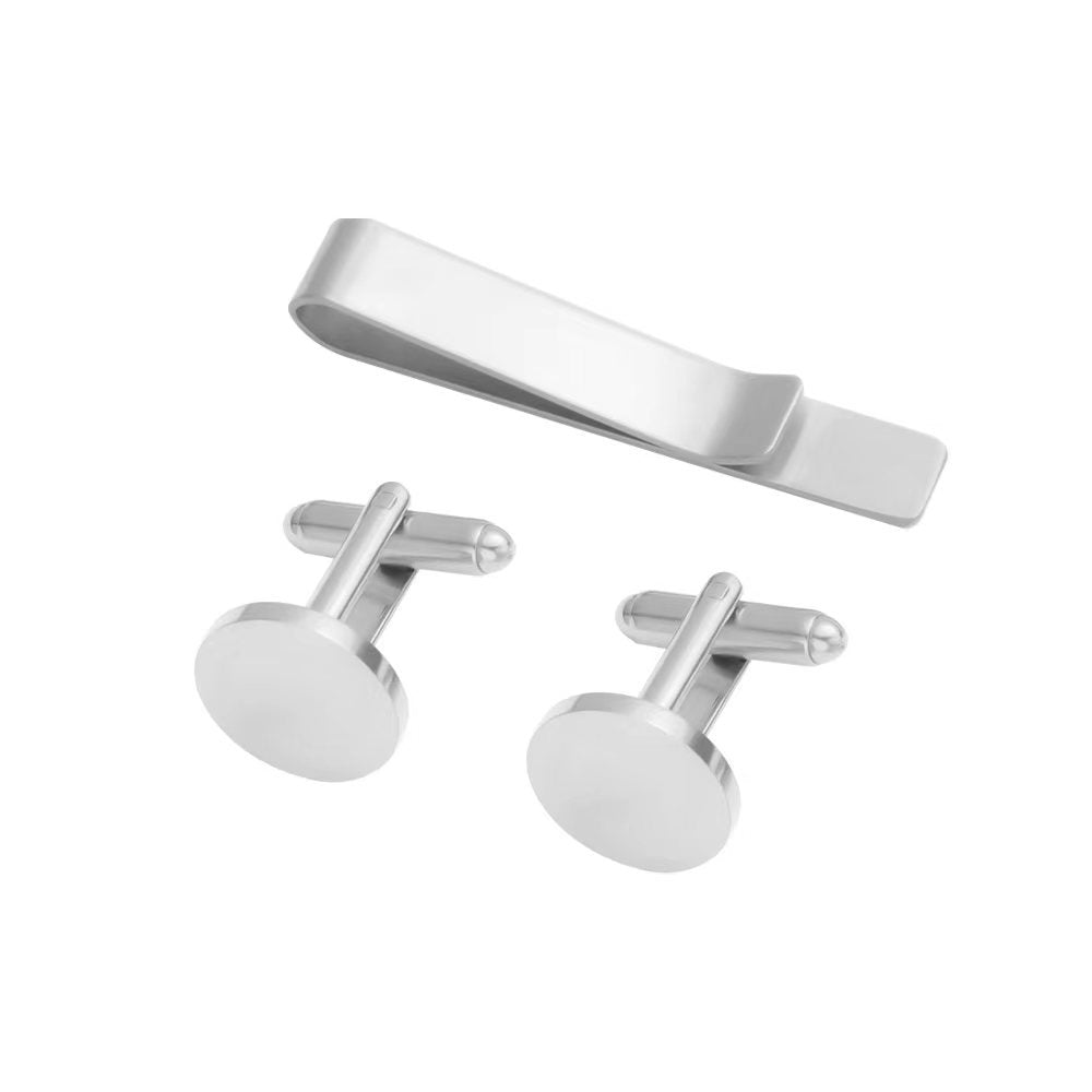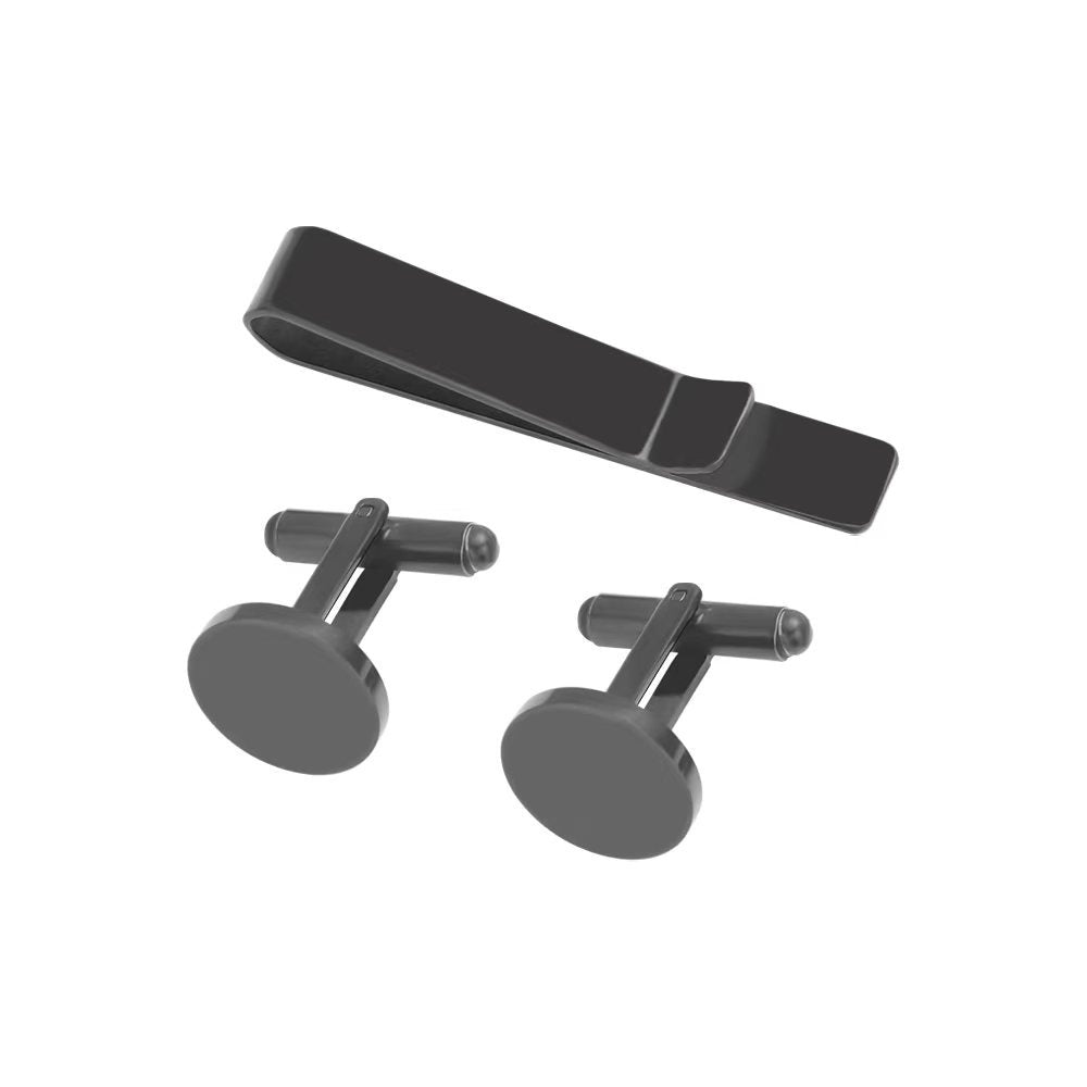 Simple Solid Color Titanium Steel Men's Cufflinks and Tie Clip Set