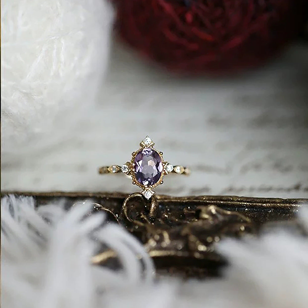 Simple Square Sterling Silver Amethyst Crown Ring