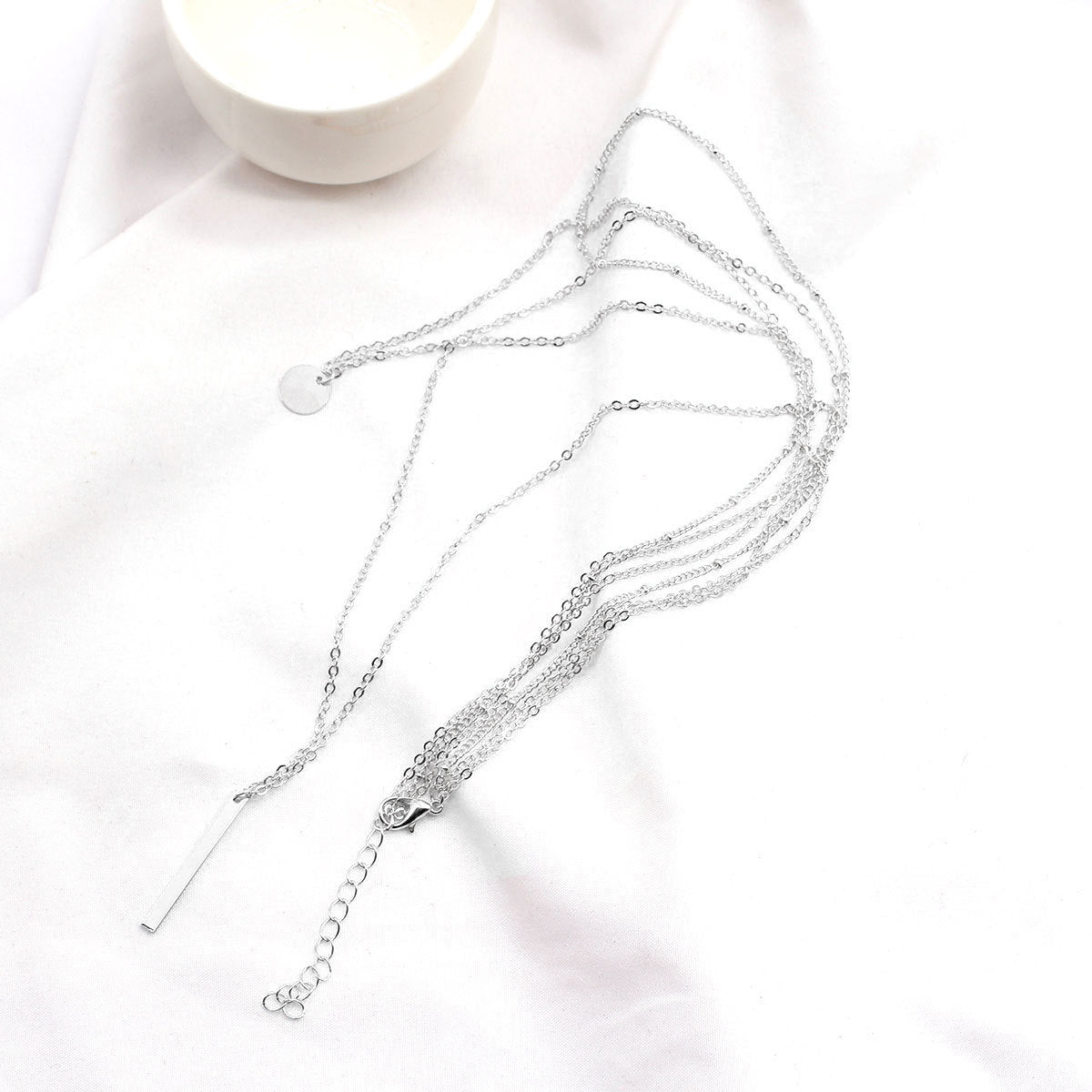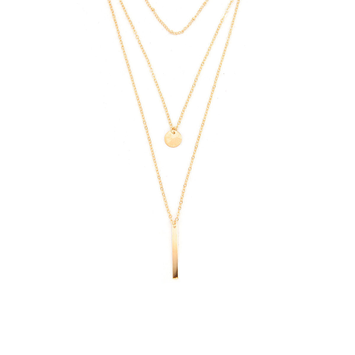 Simple Water Droplet Layered Alloy Necklace with Metal Beads and Sequins