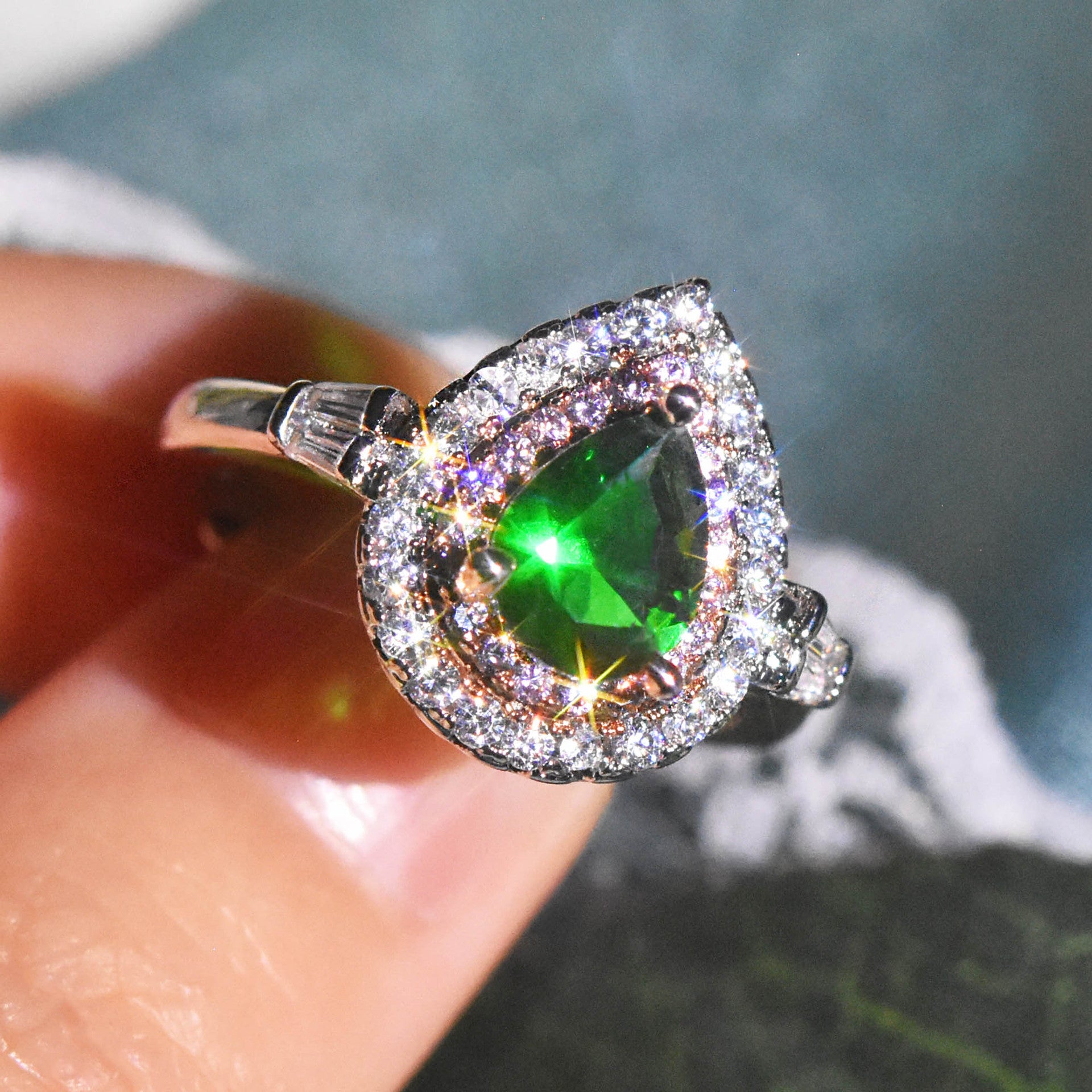 Simple Style Water Droplet Moissanite Emerald Simulated Gemstone Ring
