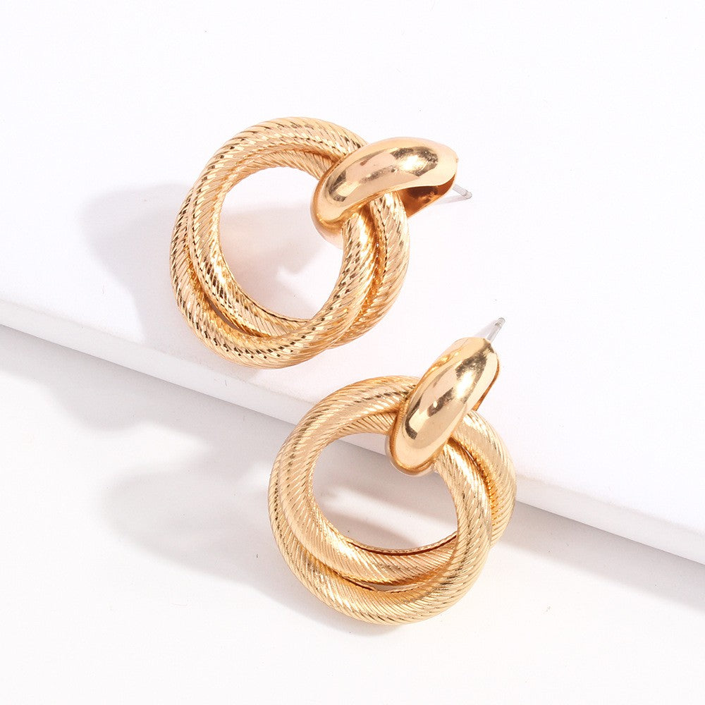 Simple Twist Double Hoop Alloy Statement Earrings in Gold