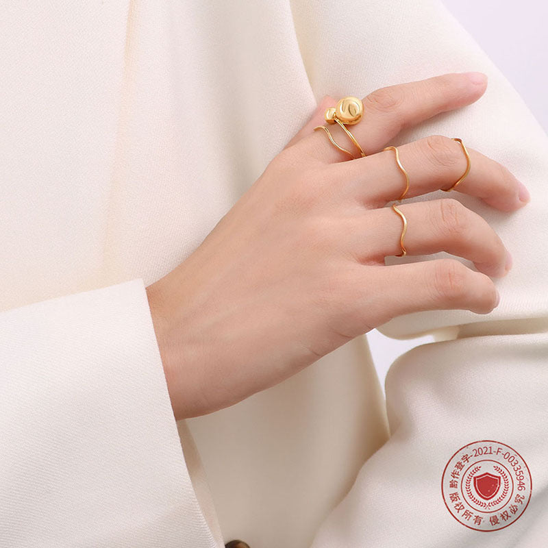 Minimalist Titanium Steel Open Band Ring with Ball Design for Women