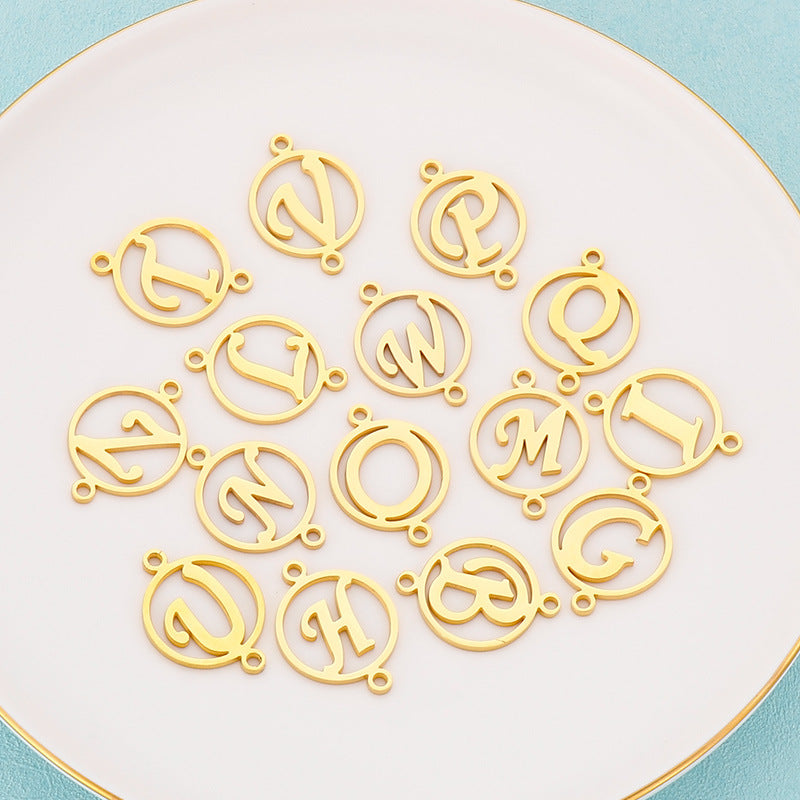 "Stainless Steel Geometric Double Circle Hollow Letter Pendant Necklace"