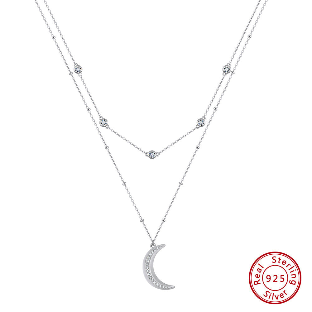 14K Gold Plated Sterling Silver Moon Double Layer Necklace