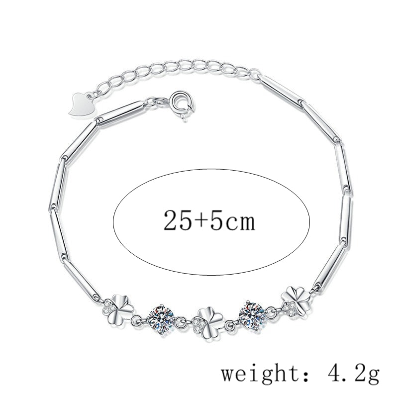 Sterling Silver Four Leaf Clover Moissanite Zircon Bracelet for Women