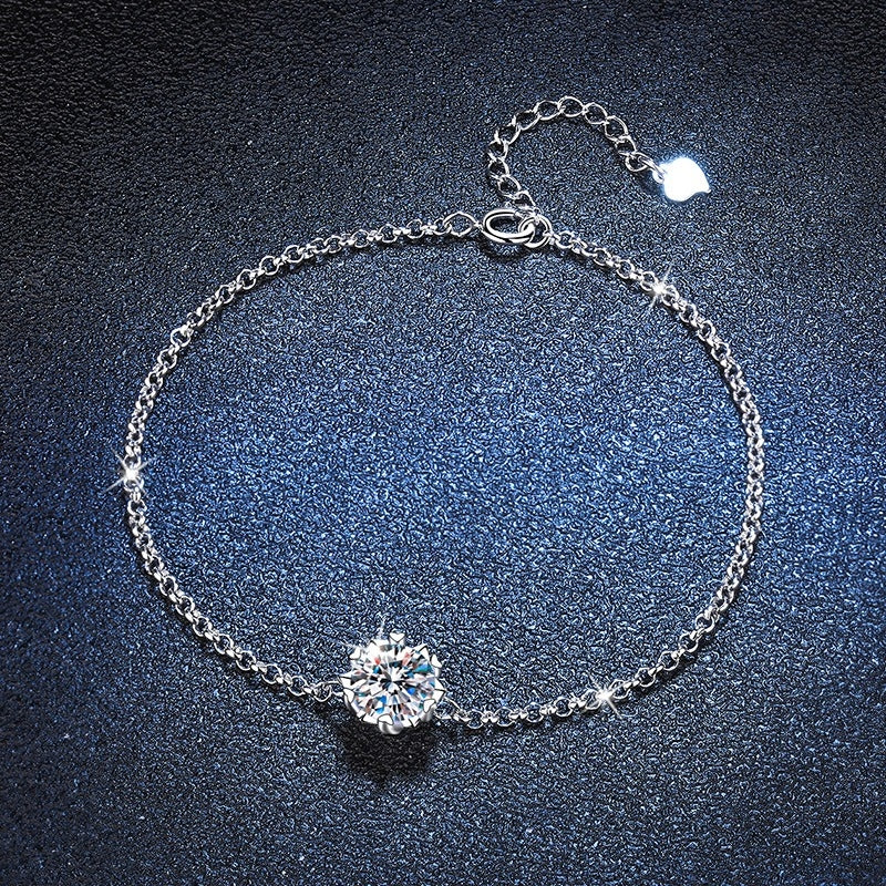 Sterling Silver Snowflake Moissanite Bracelet with Hexagram Design