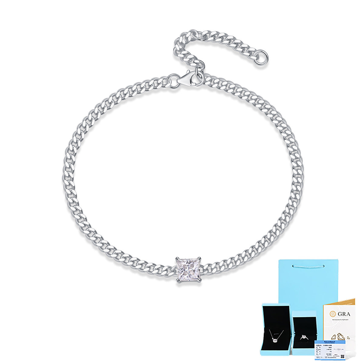 Sterling Silver Moissanite Couple Bracelets with Platinum Plating