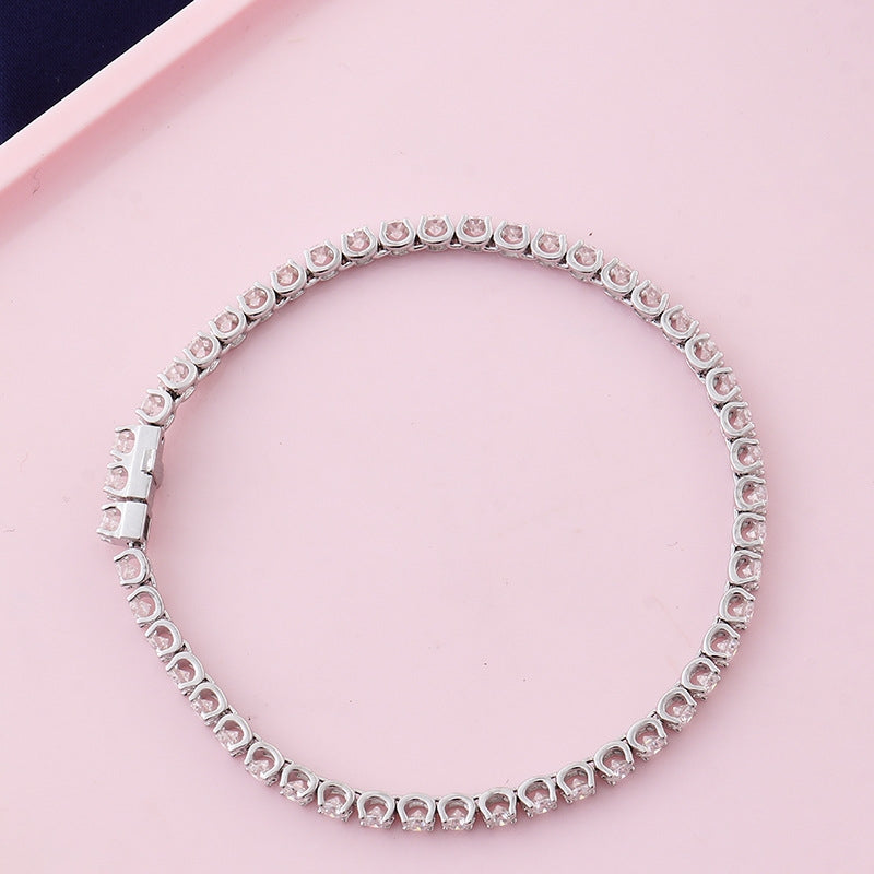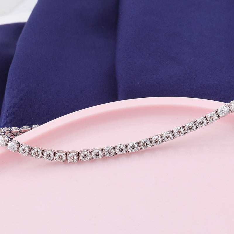 Sterling Silver Moissanite Tennis Chain Bracelet Necklace 925 Silver INS Style
