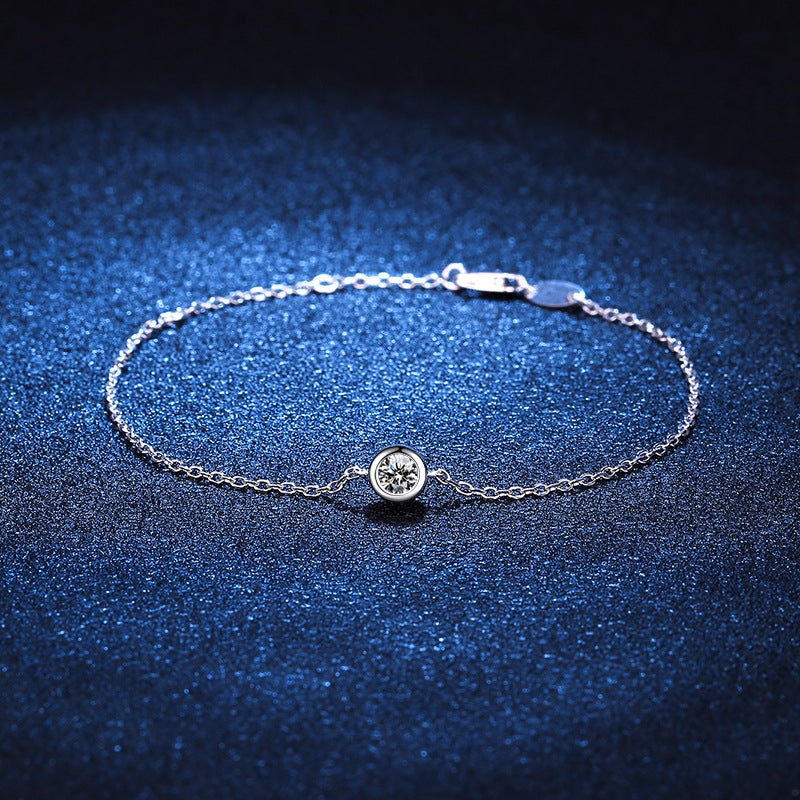 Sterling Silver Moissanite Solitaire Bracelet with Platinum Plating