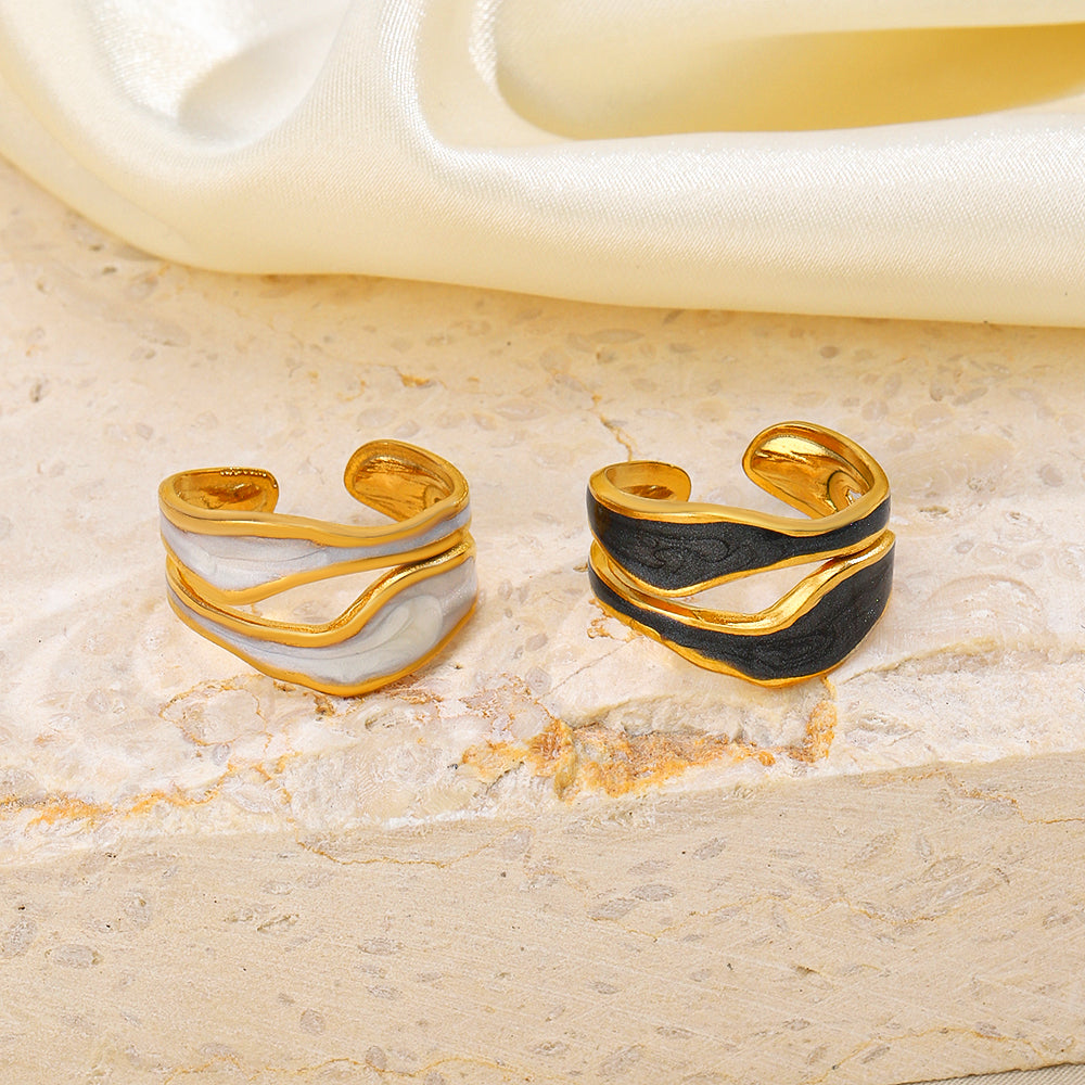 Irregular Enamel Plated 18K Gold Adjustable Stainless Steel Ring