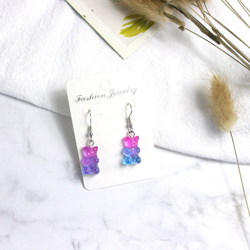 Colorful Bear Multicolor Earrings for Girls - Gradient Macaron Style