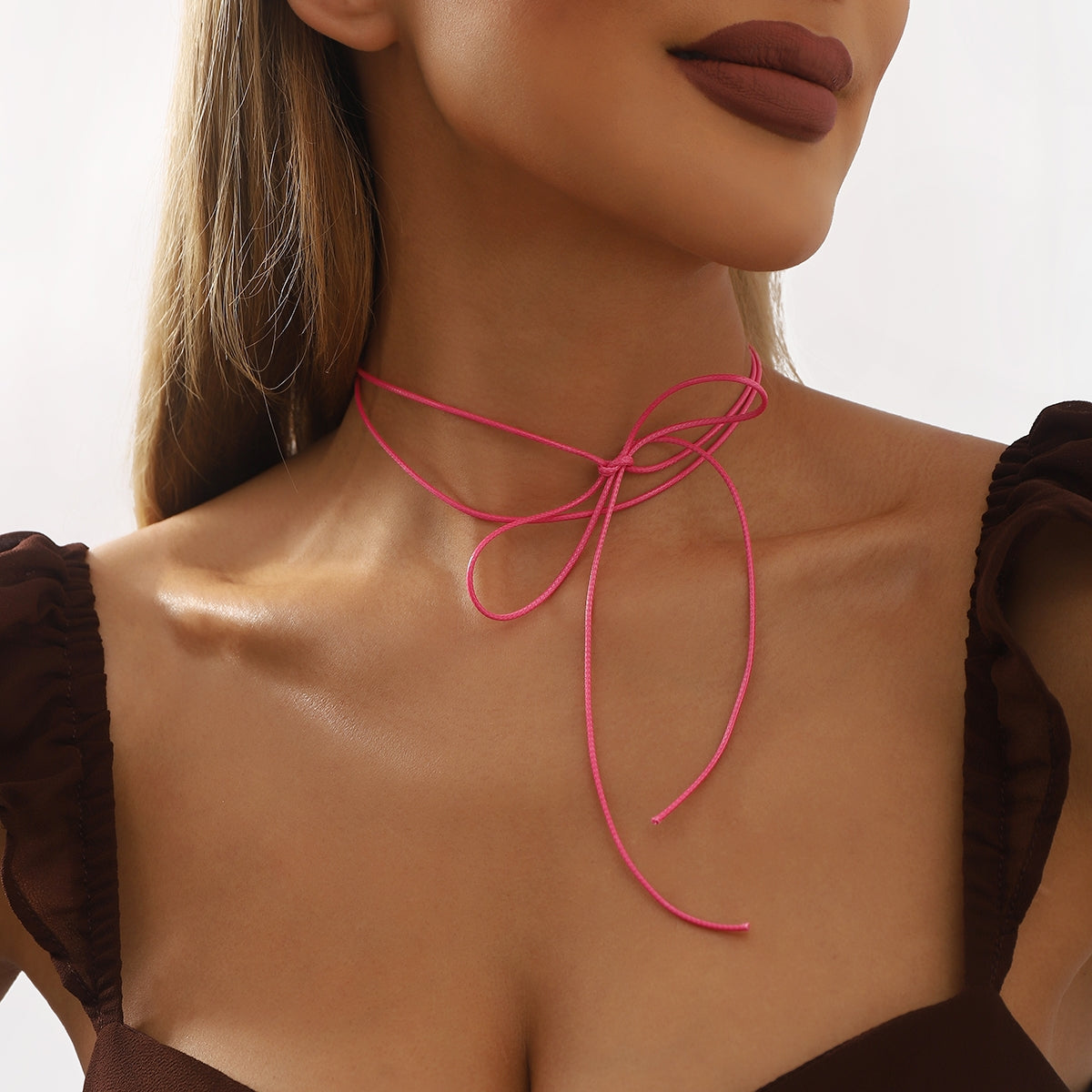 Sweet Artistic Candy Color Bow Knot Wax Line Choker Necklace