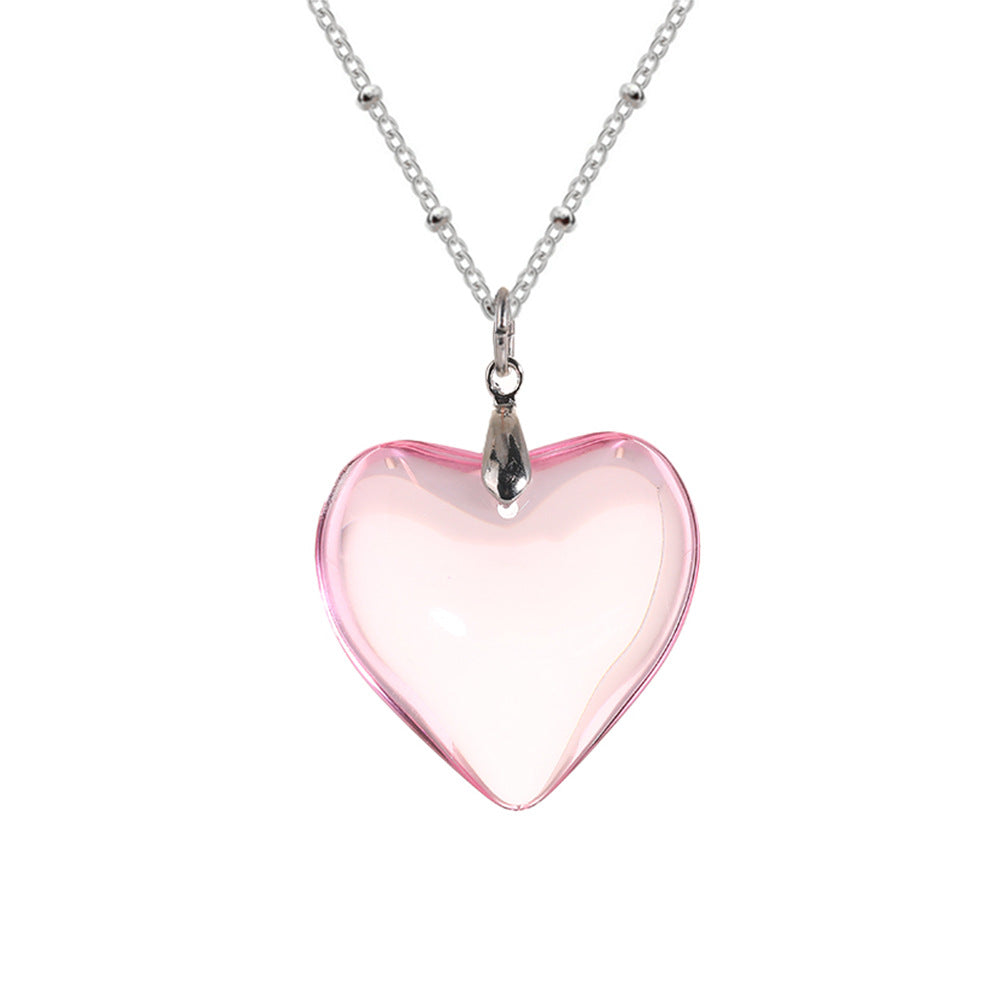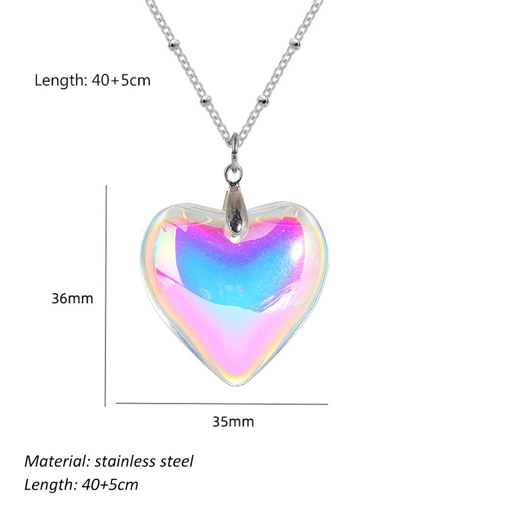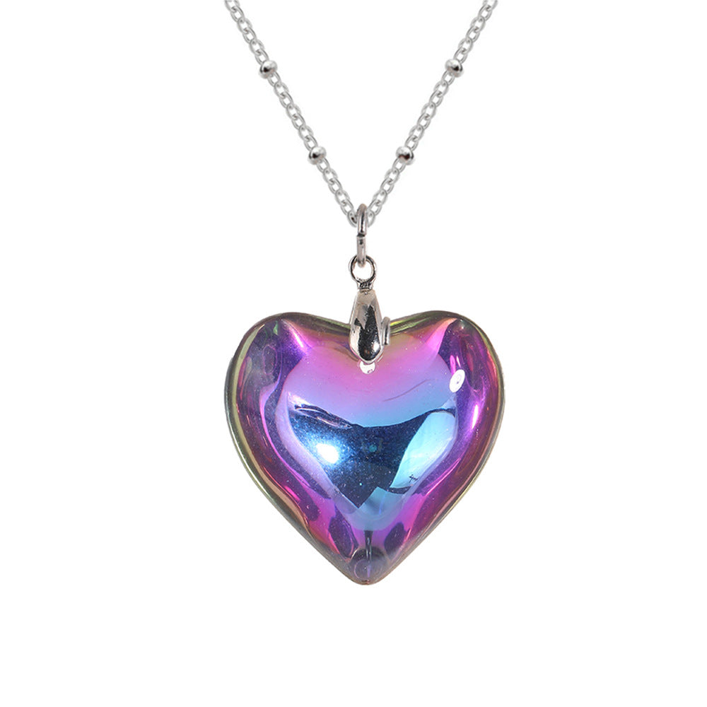 Sweet Artistic Heart-Shaped Stainless Steel Pendant Necklace with Colorful Glass Accents