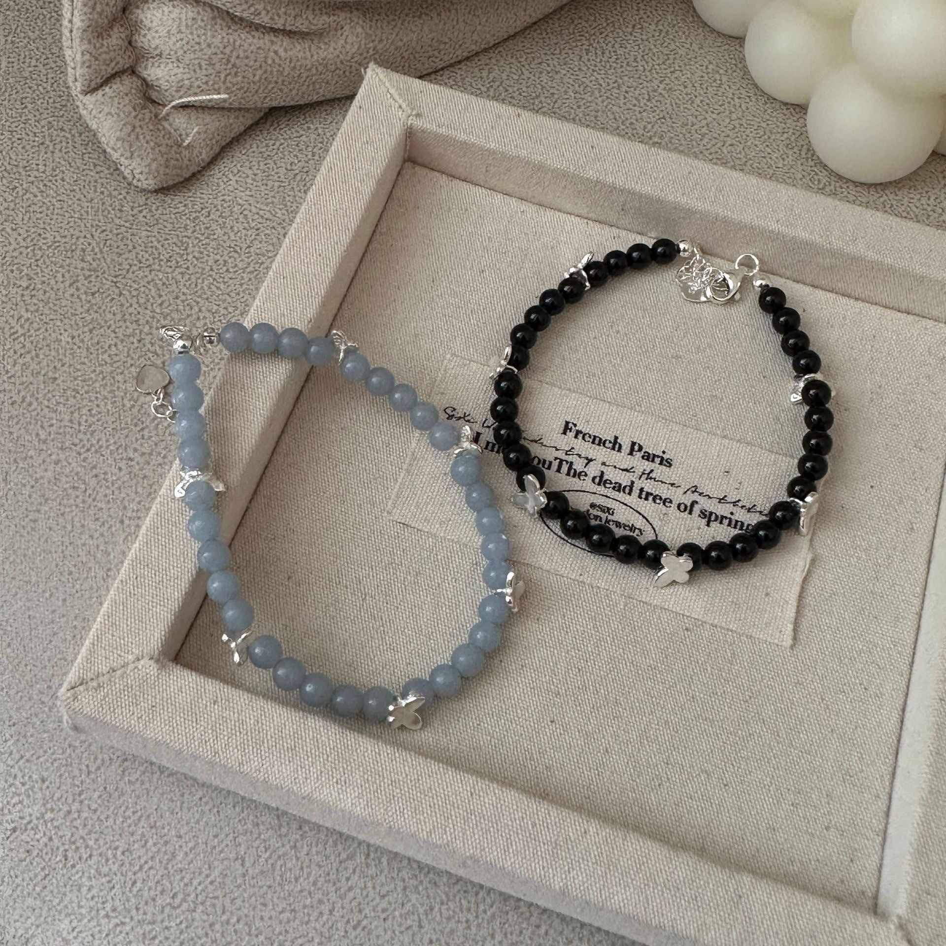 Sweet Butterfly Natural Stone Sterling Silver Bracelet - Minimalist Korean Design