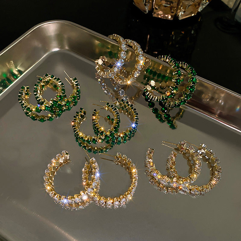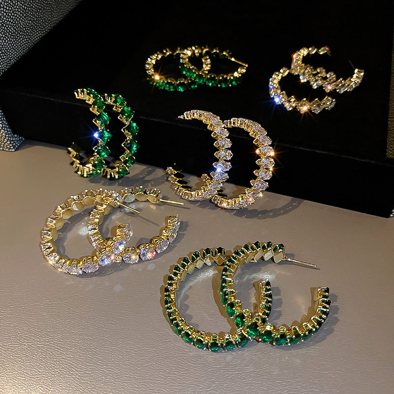 Sweet C Shape Oval Rhombus Zircon Inlay Women's Earrings 2023 Trendy Luxury Design