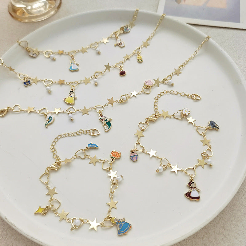 Sweet Fairy Tale Heart and Star Alloy Plated Pearl Bracelet for Women