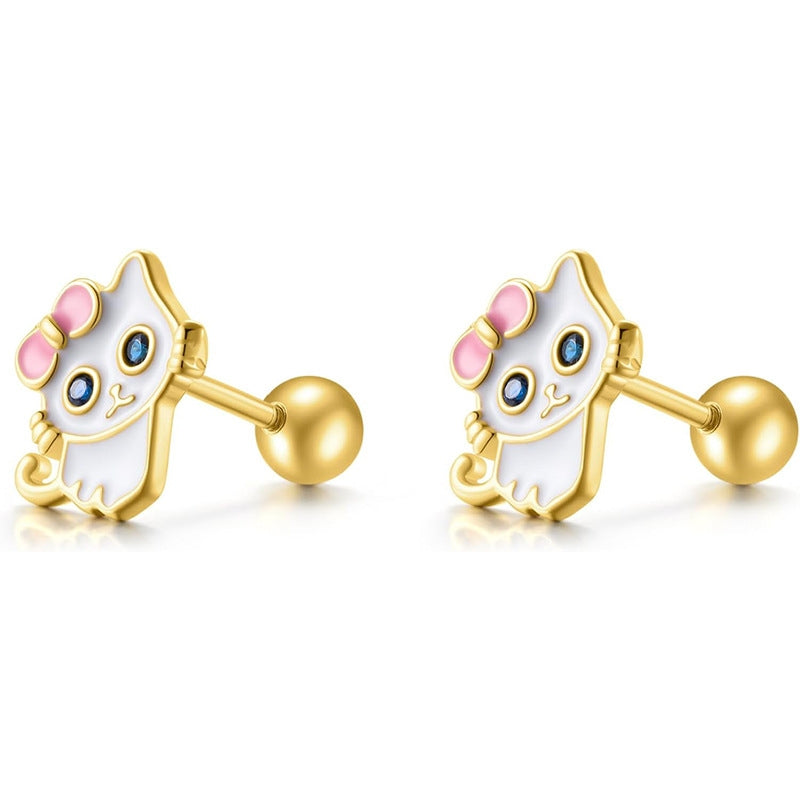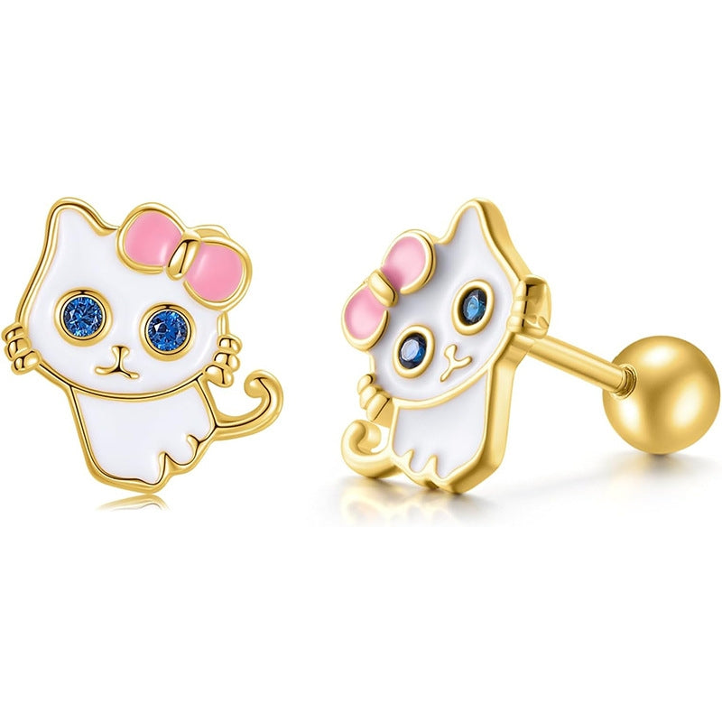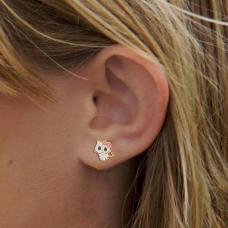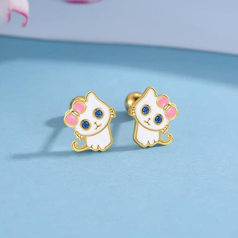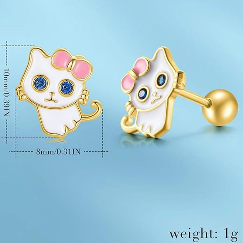 Sweet Cat Enamel Zinc Alloy Minimalist Spiral Back Earrings for Girls