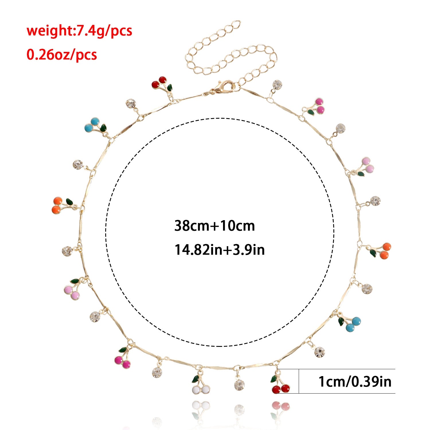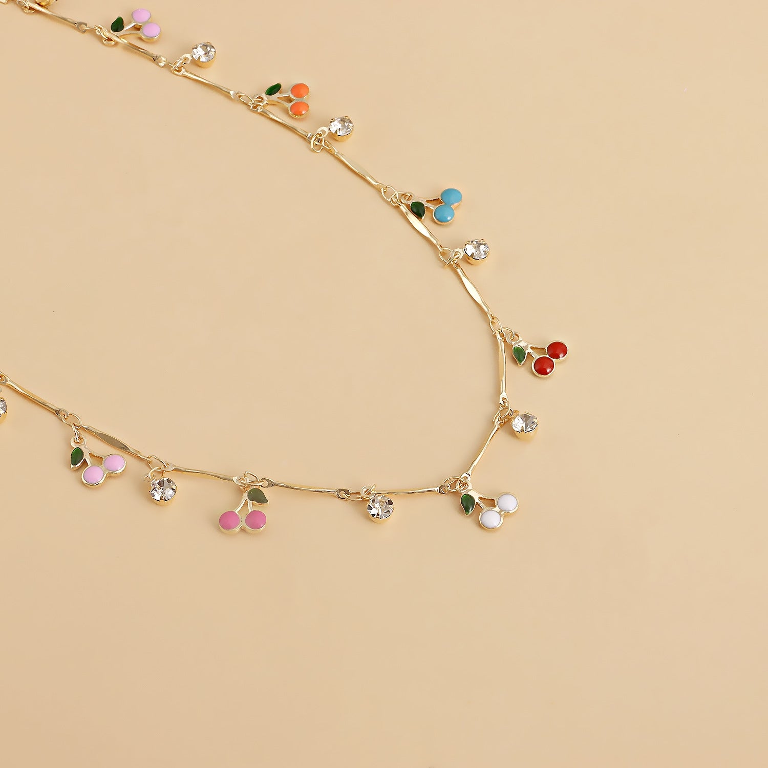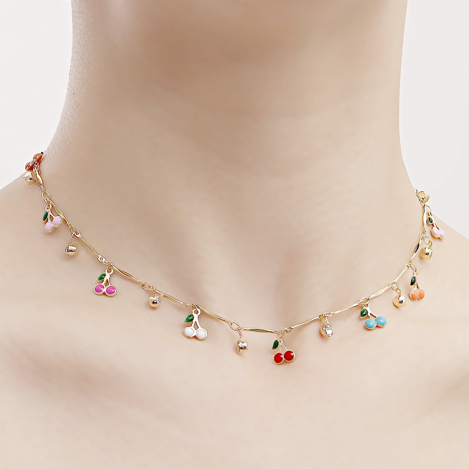Sweet Cherry Zircon Pendant Necklace with Colorful Enamel Choker