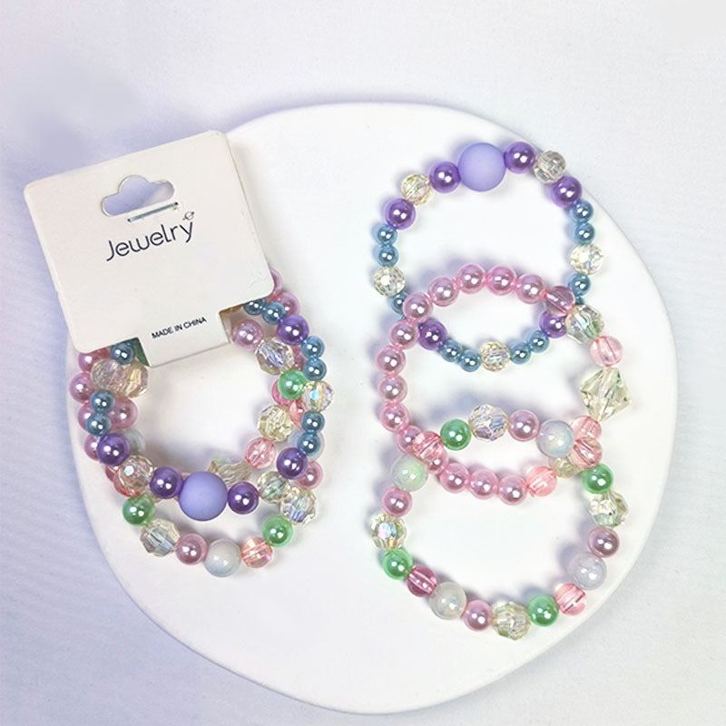 Sweet Pastel Pearl & Crystal Beaded Acrylic Bracelet