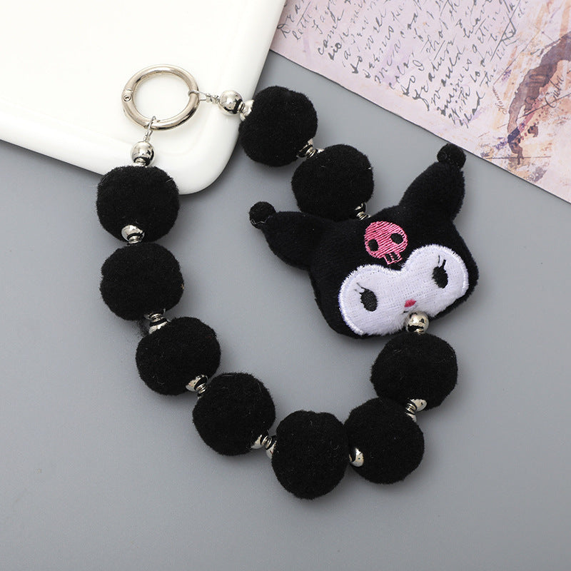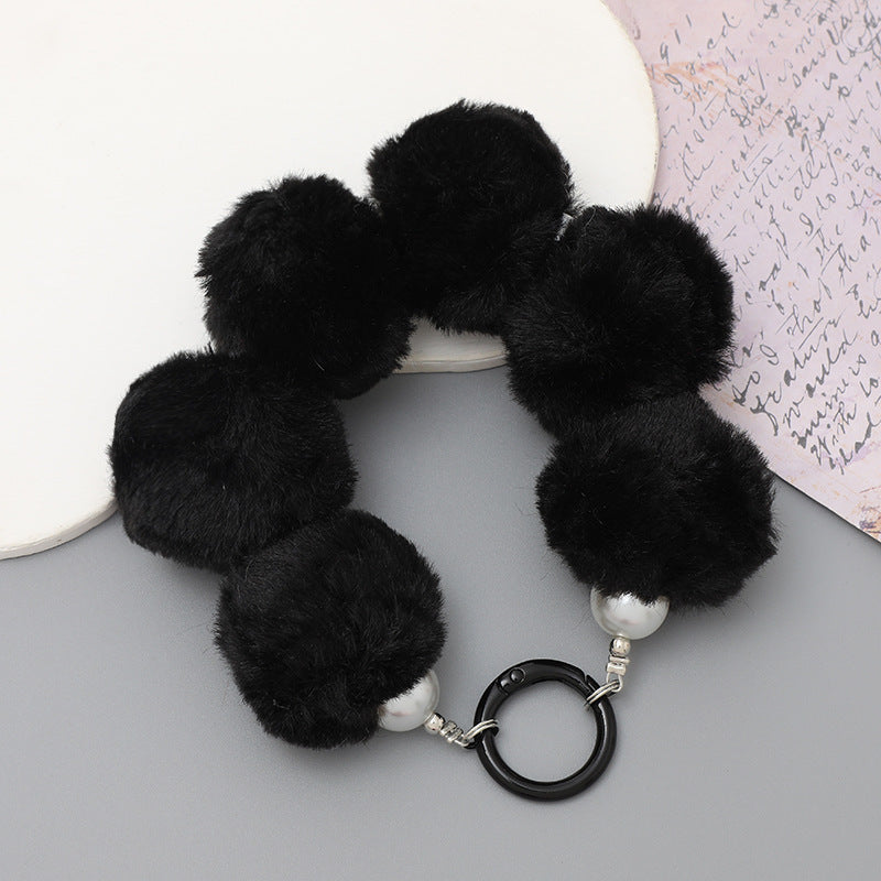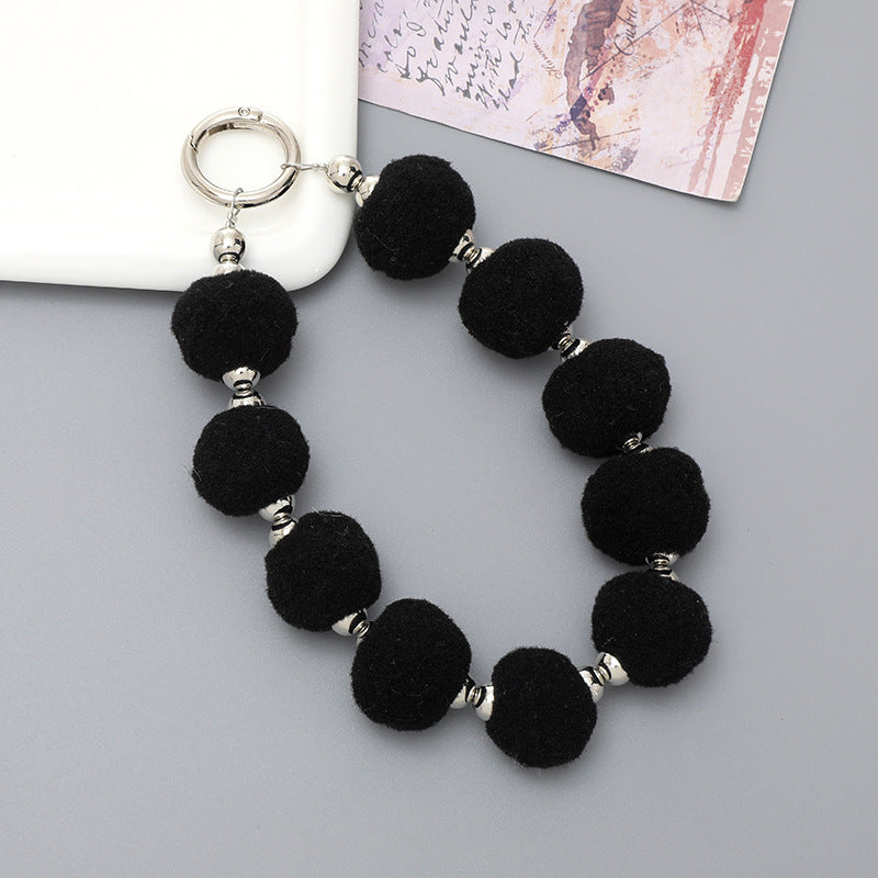 K2792 Cartoon Plush Beaded Pendant Black / Hair ball pendant