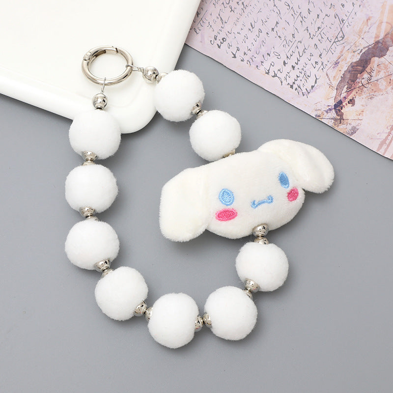 K2787 Cartoon Plush Beaded Pendant White / Hair ball pendant
