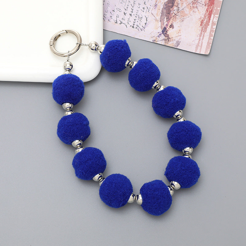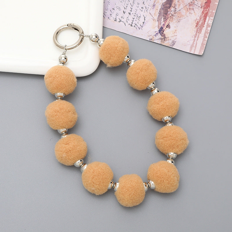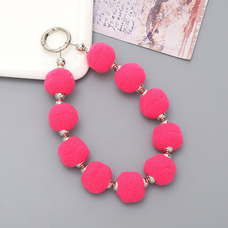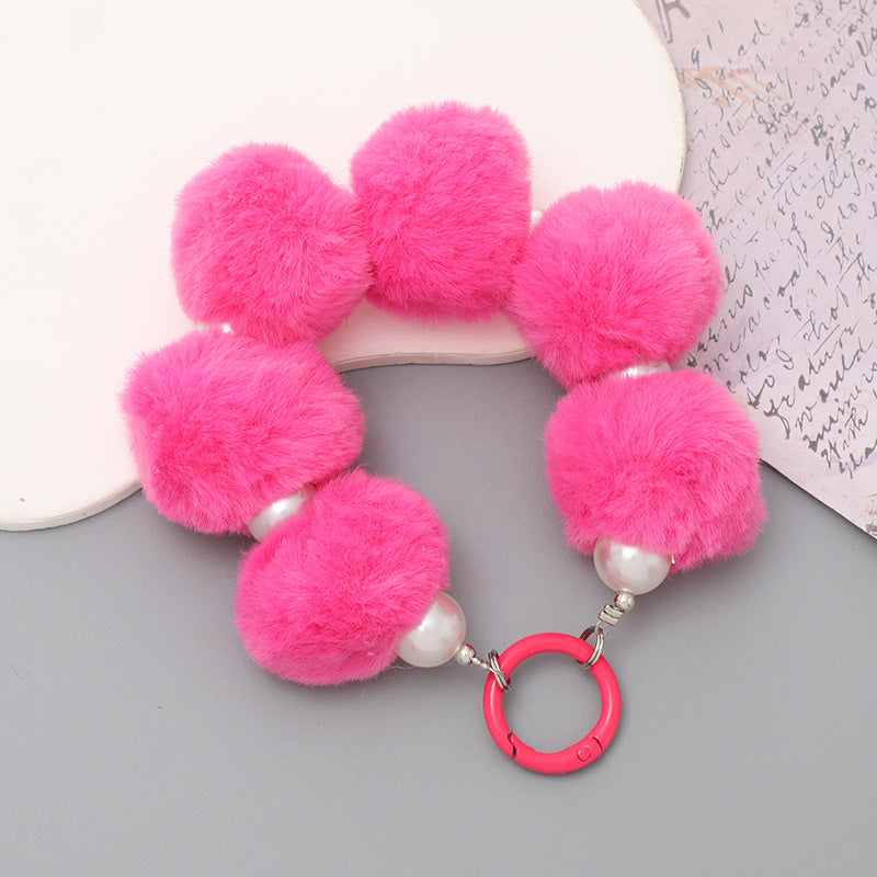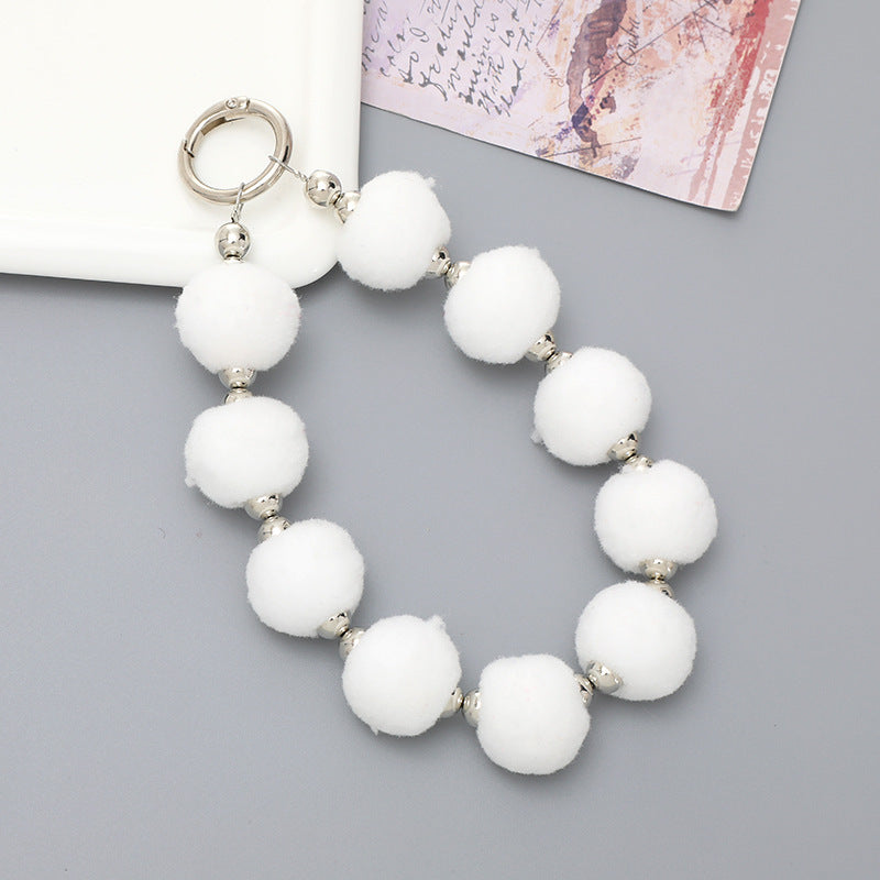 Sweet Flower Beaded Fur Ball Keychain and Phone Charm Bracelet