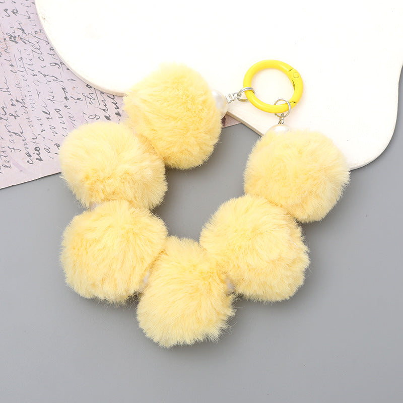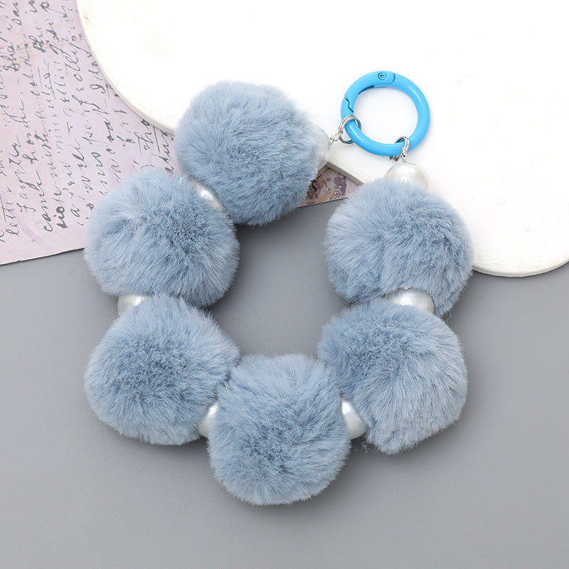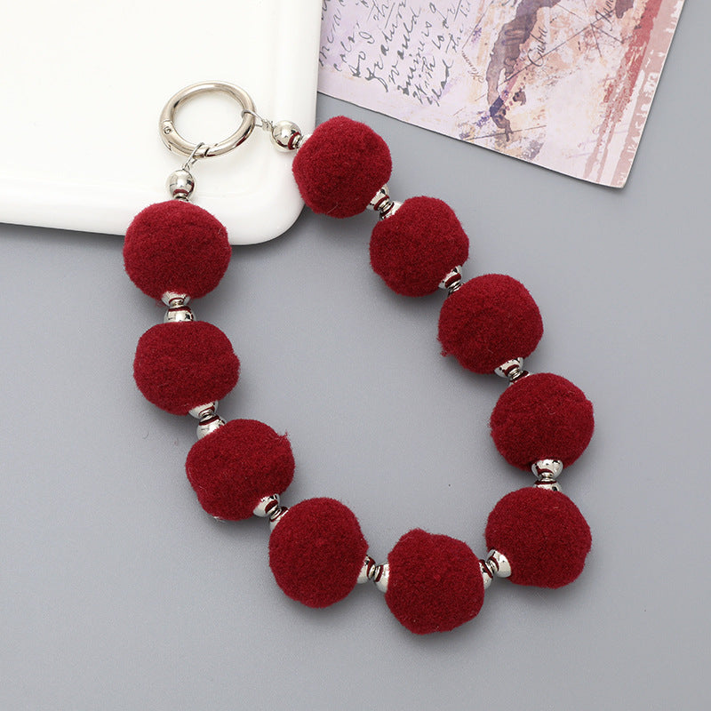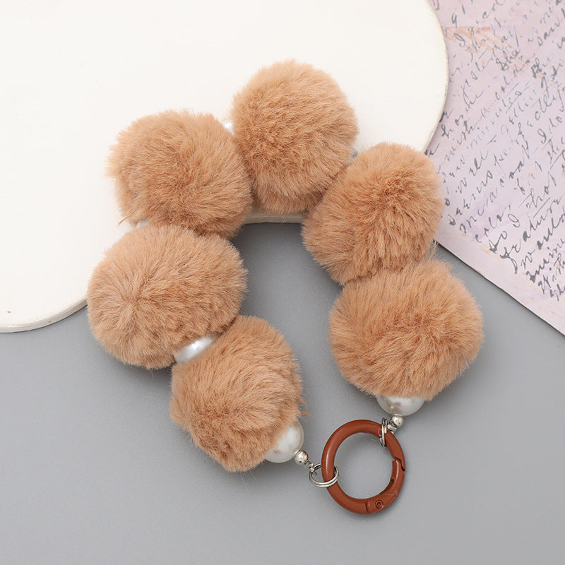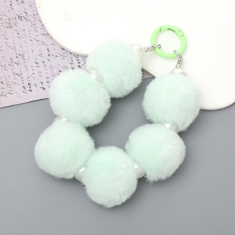 Sweet Flower Beaded Fur Ball Keychain and Phone Charm Bracelet