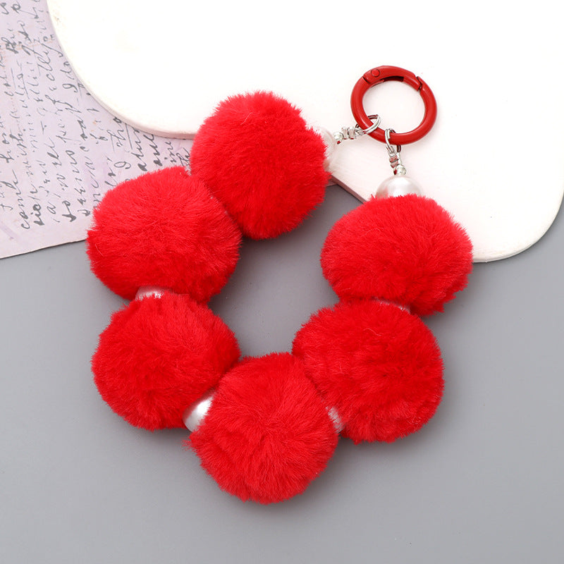 K2791 Cartoon Plush Beaded Pendant Pink / Hair ball pendant