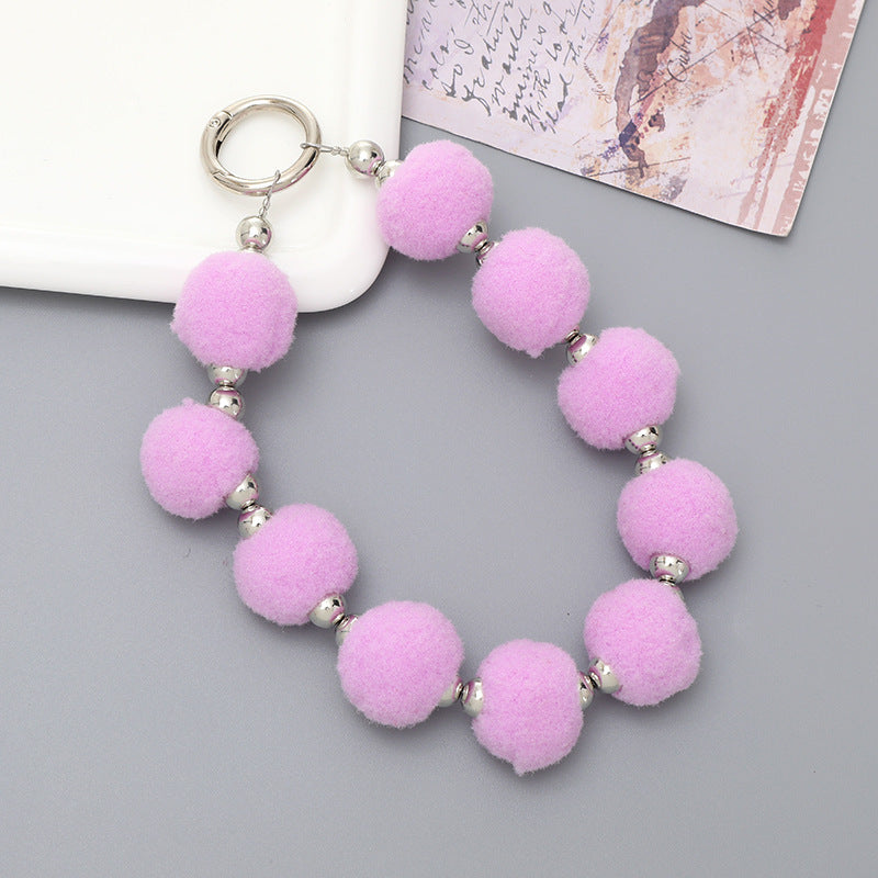 K2789 Cartoon Plush Beaded Pendant Purple / Hair ball pendant