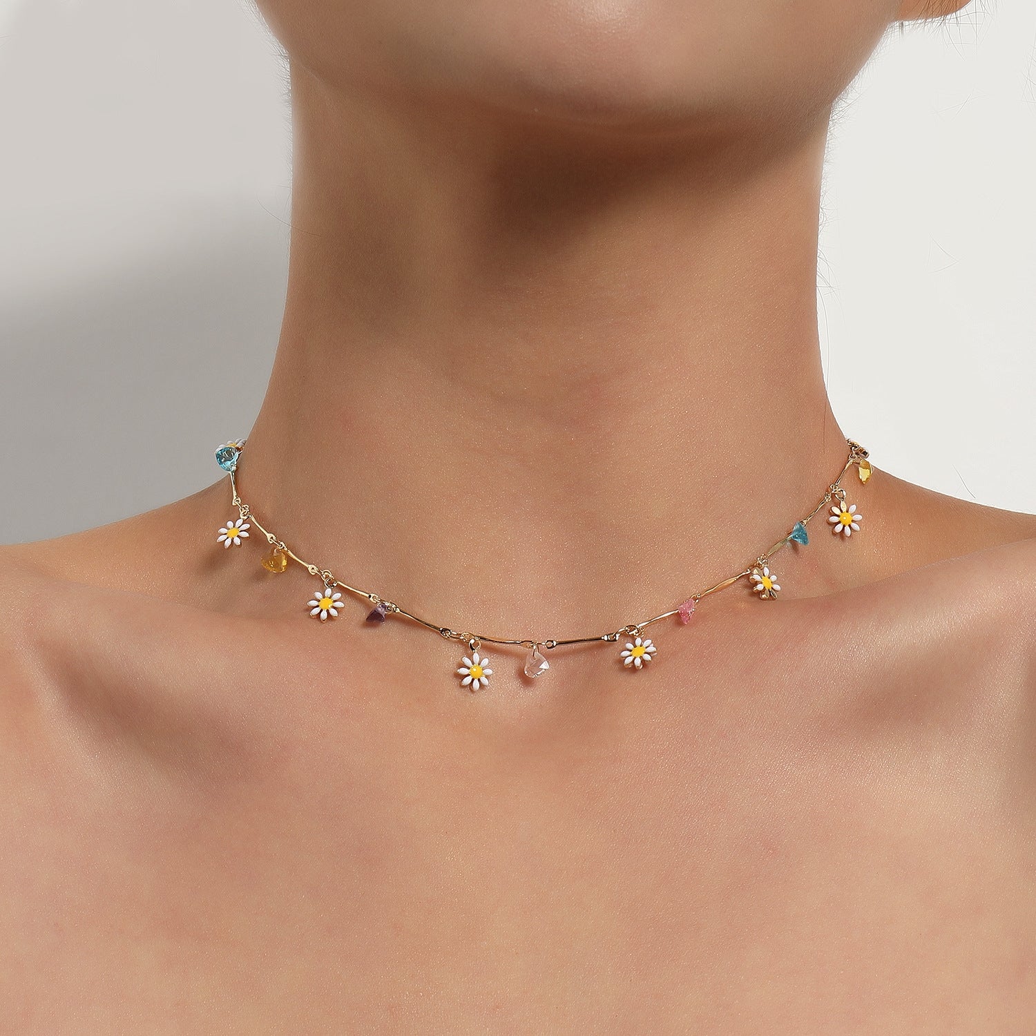 Sweet Floral Enamel Gemstone Choker Necklace