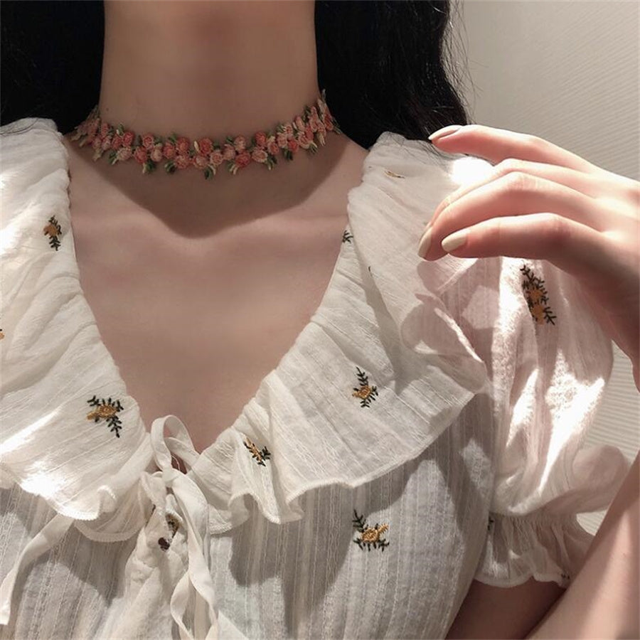 Sweet Floral Lace Embroidered Choker Necklace for Women