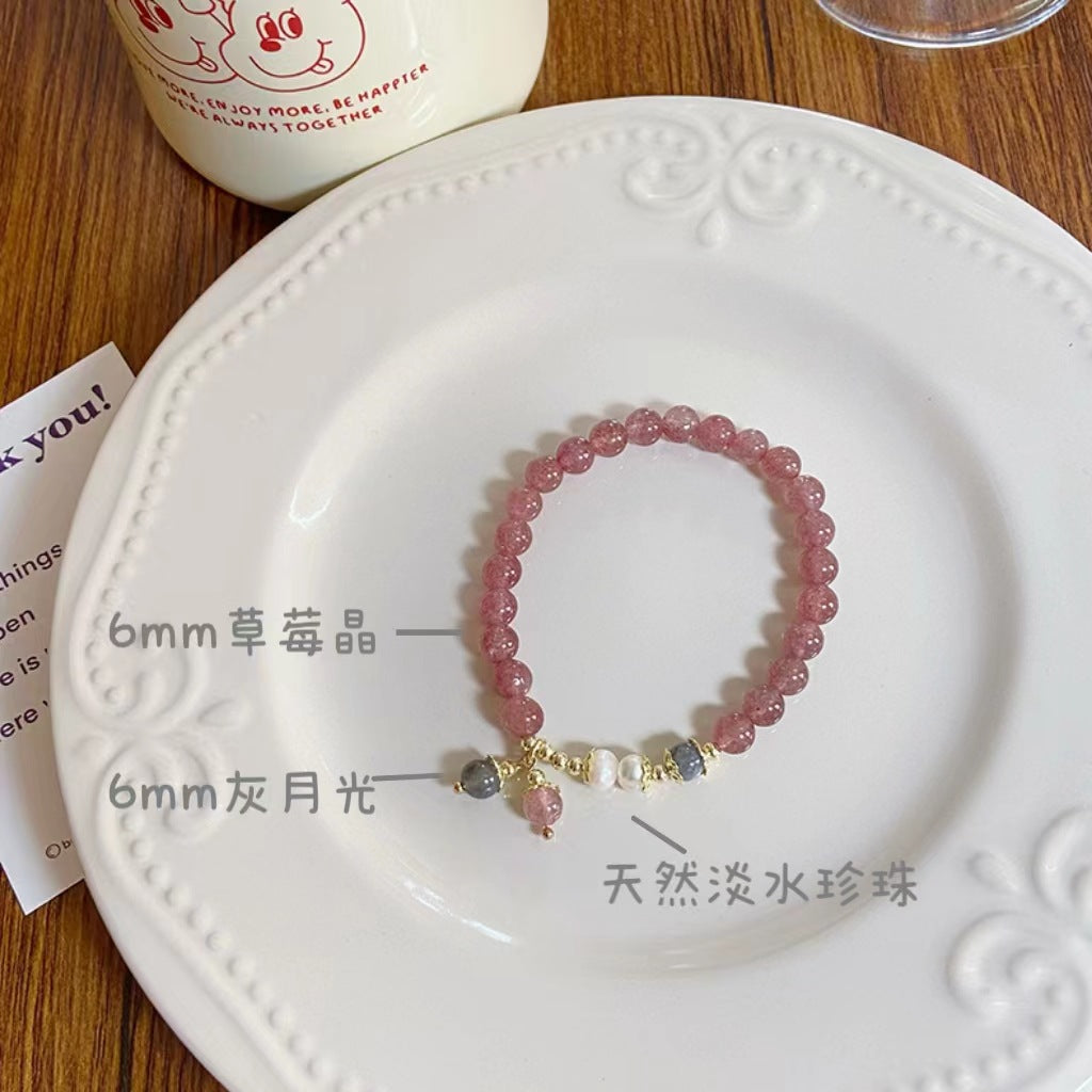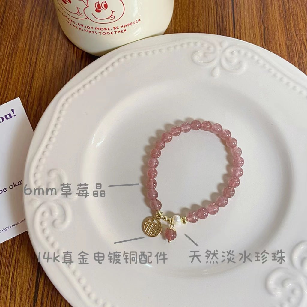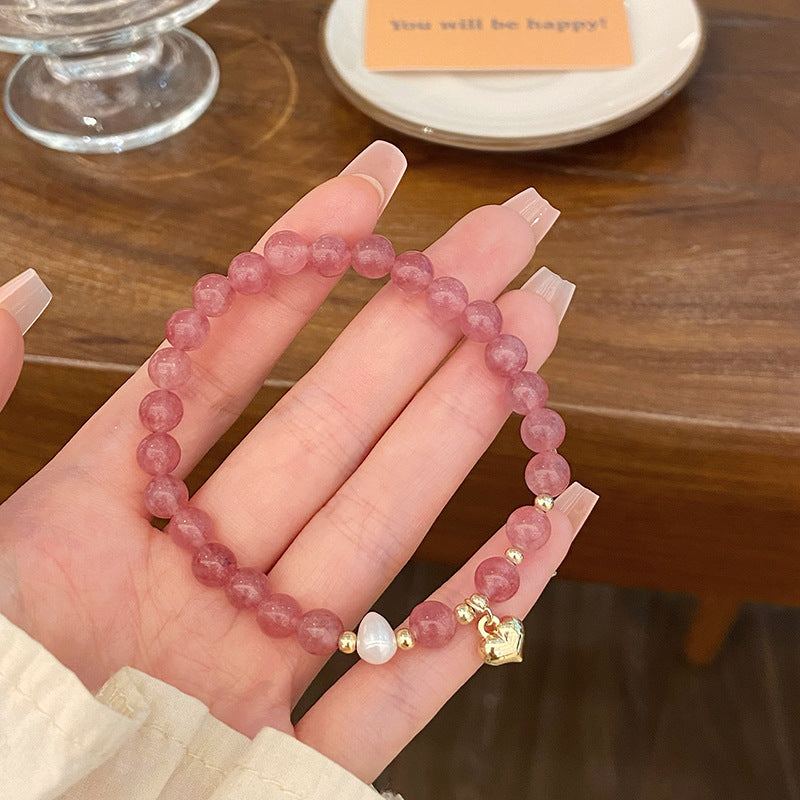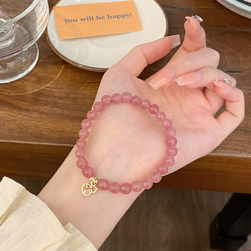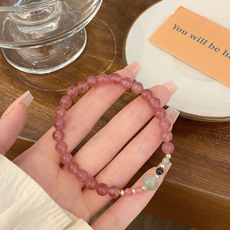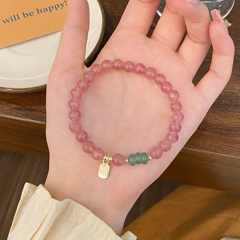 Sweet Geometric Crystal Strawberry Charm Women's Bracelet