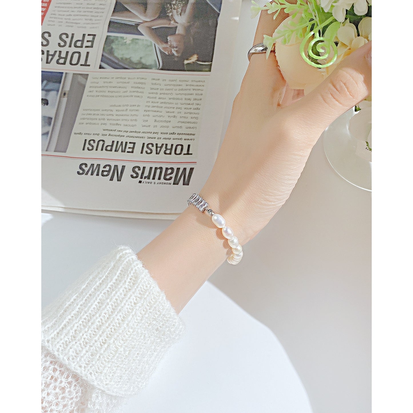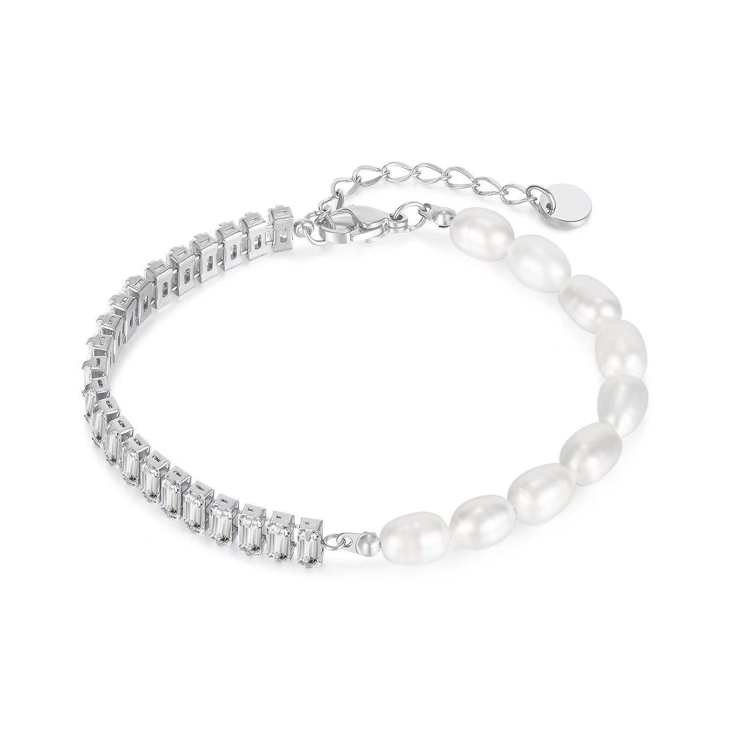 Sweet Geometric Stainless Steel Zircon and Pearl Bracelet