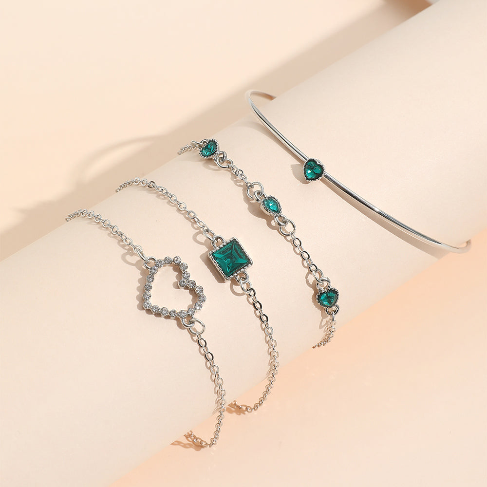 Sweet Streetwear Square Heart Gemstone Metal Bracelet Set - 4 Pieces