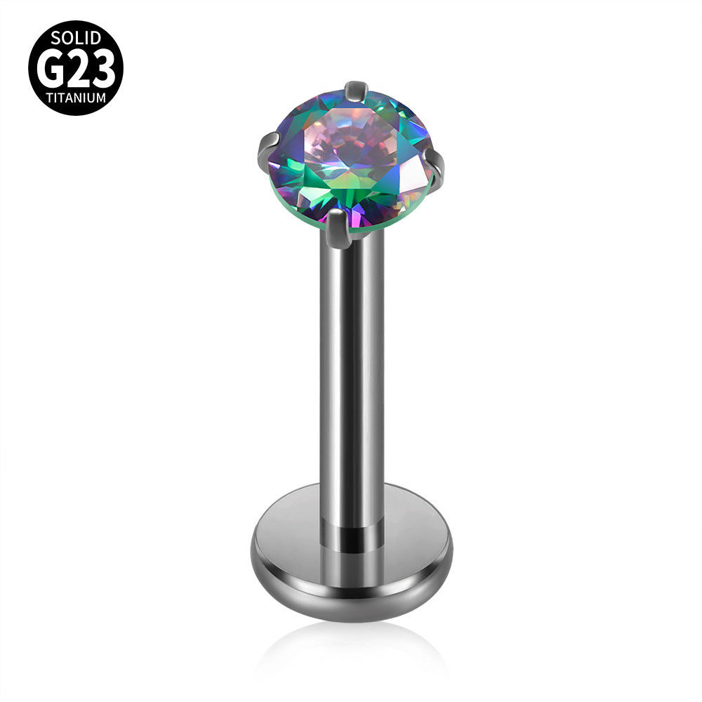 Titanium Alloy Zircon Stud Earrings & Lip Rings - Round & Four Claw Design