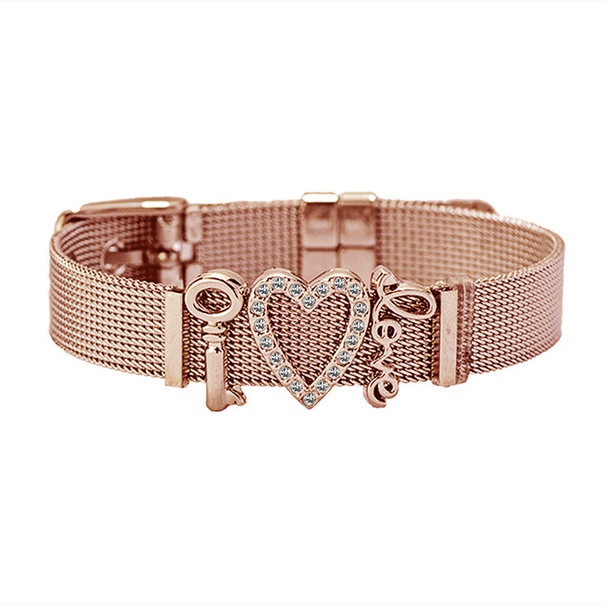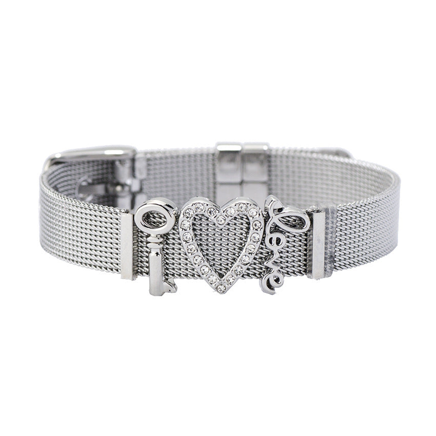 Titanium & Stainless Steel Sweetheart Love Key Bracelet with Heart Charm