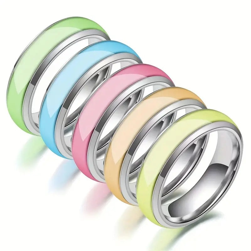 Titanium Steel Geometric Luminous Epoxy Rings