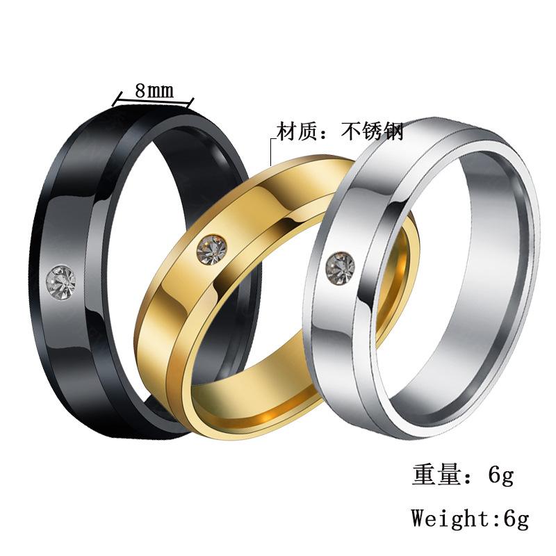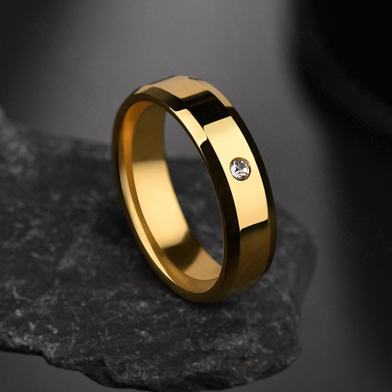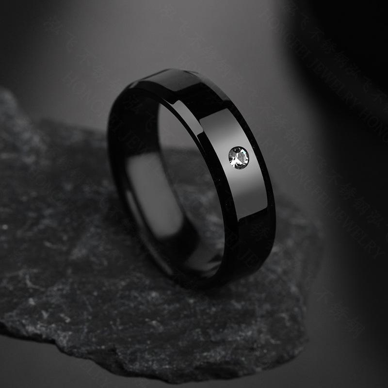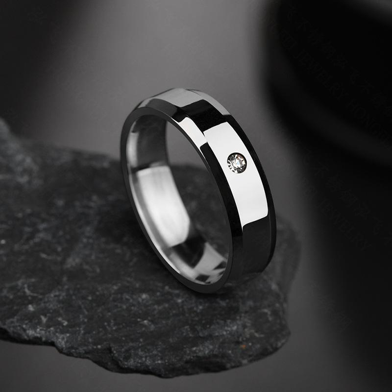 Unisex Geometric Stainless Steel Ring with 8mm Beveled Edge and Single Diamond