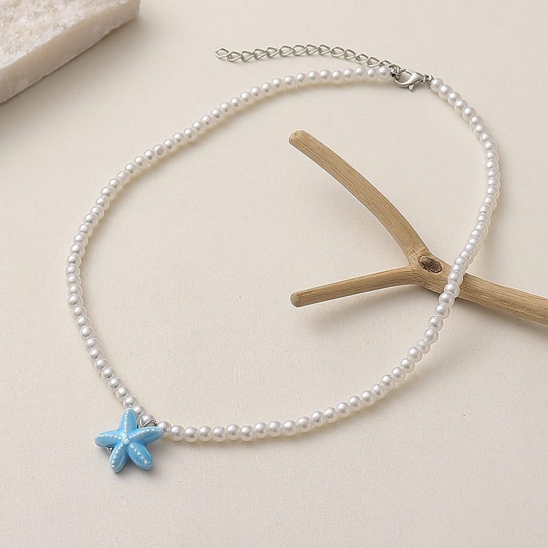 Vacation Beach Starfish Imitation Pearl Beaded Necklace for Women