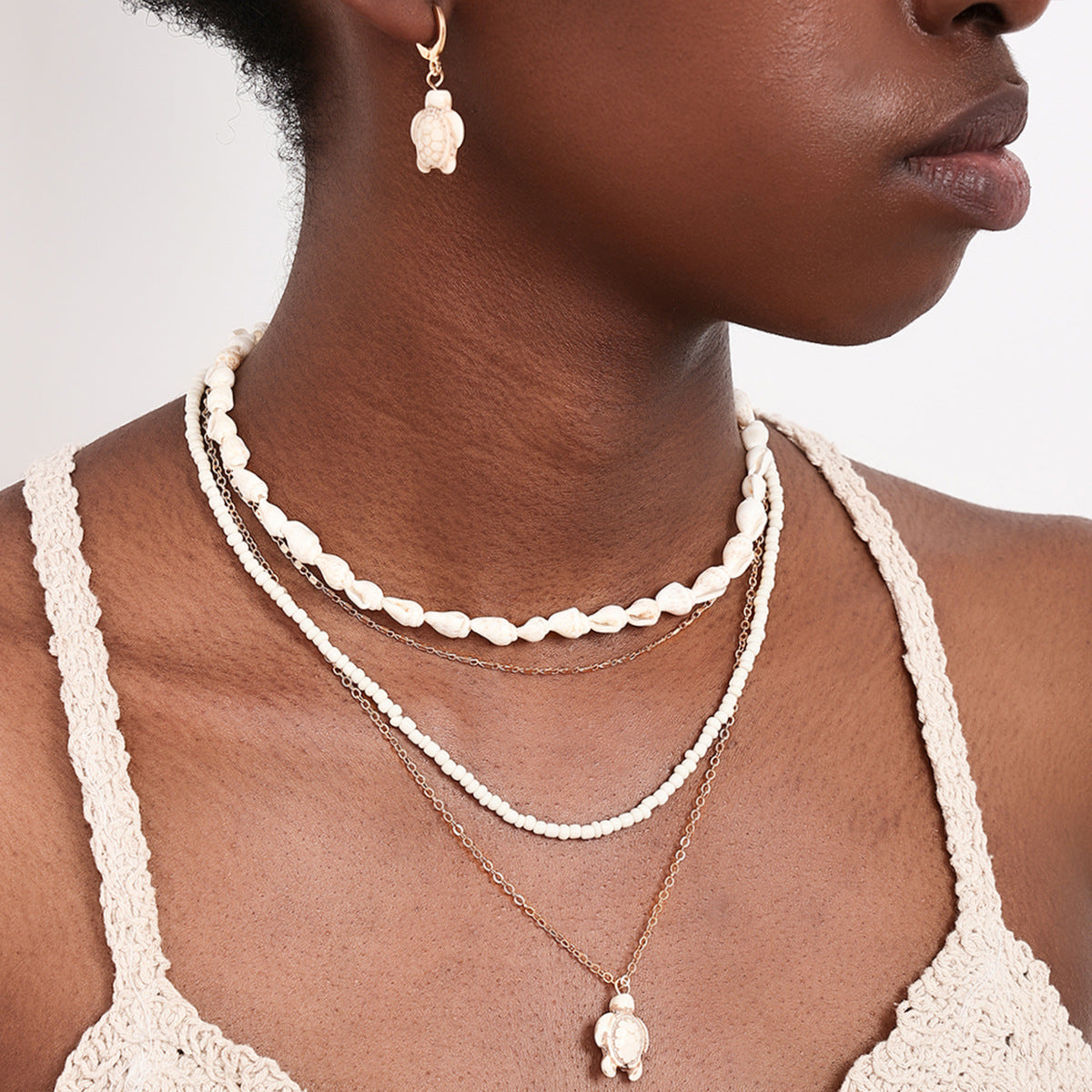 Vacation Beach Tortoise Resin Shell Jewelry Set - Necklace and Earrings