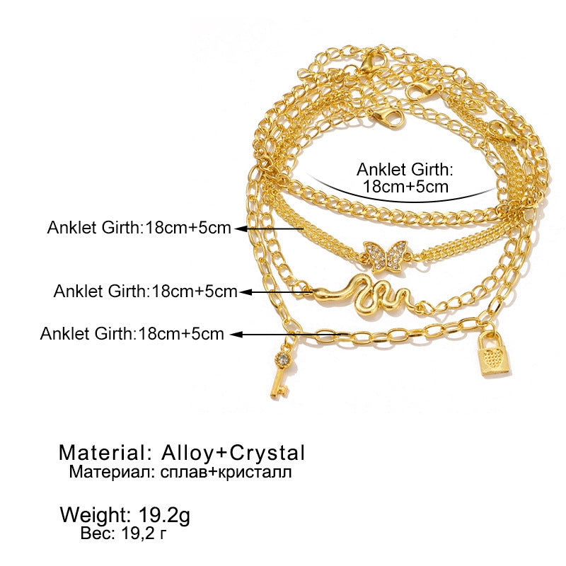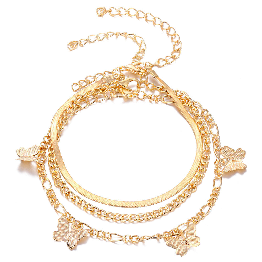 Vacation Multi-Layer Butterfly Pendant Rhinestone Pearl Alloy Anklet Set