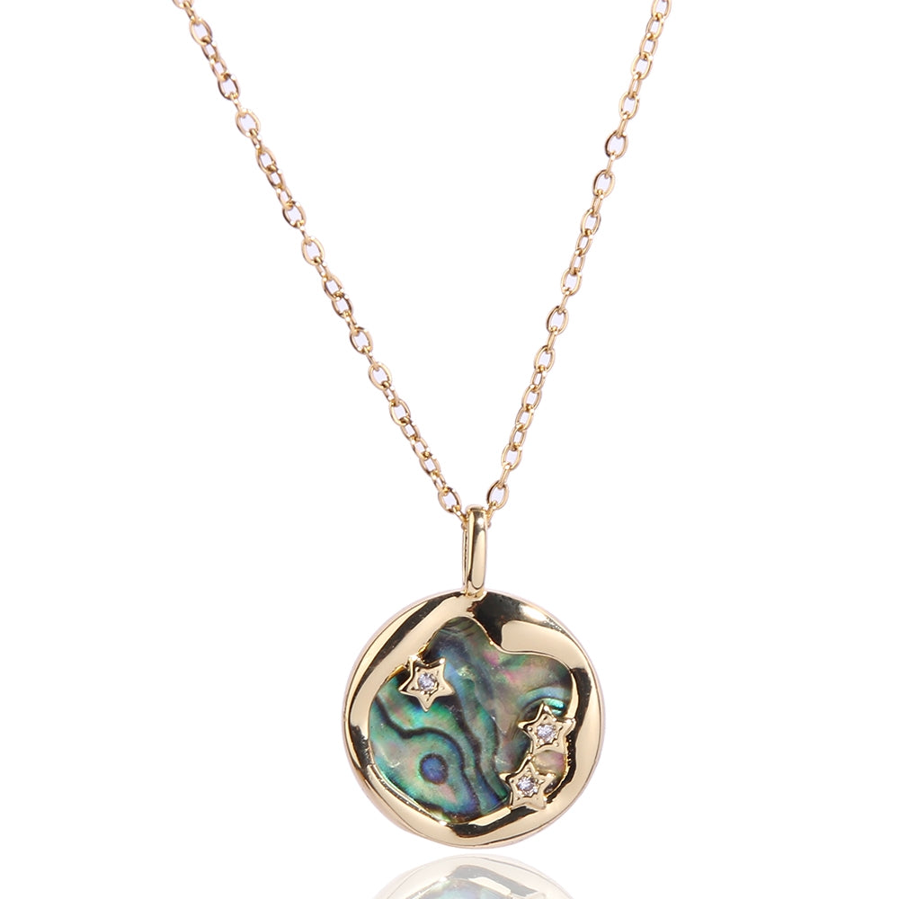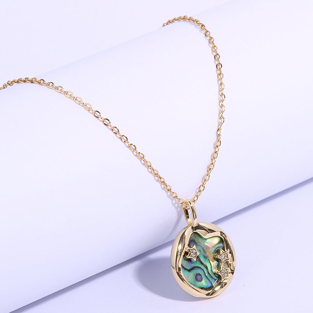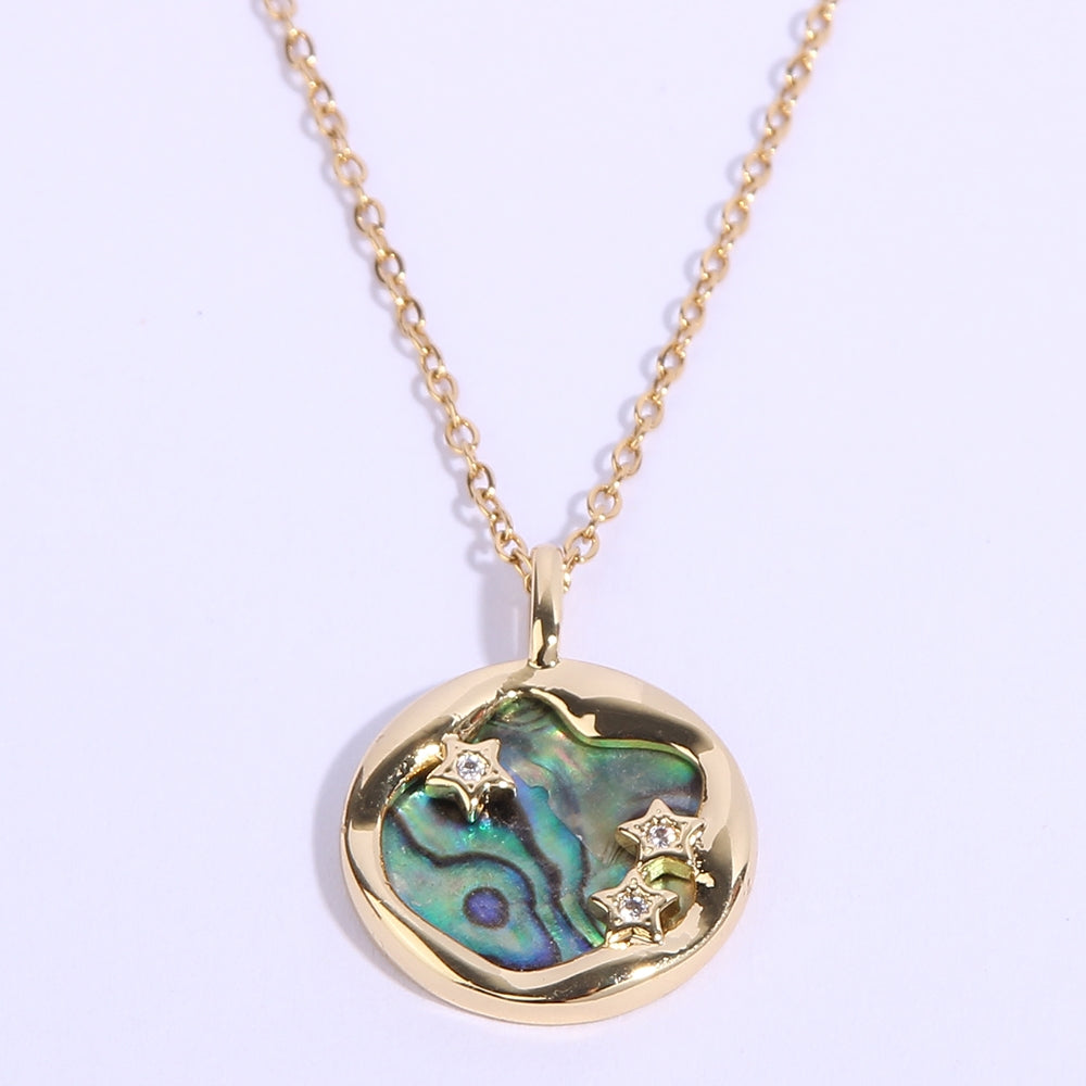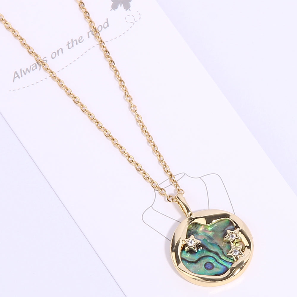 Vacation Marine Style Star & Shell Zircon 14K Gold Plated Pendant Necklace
