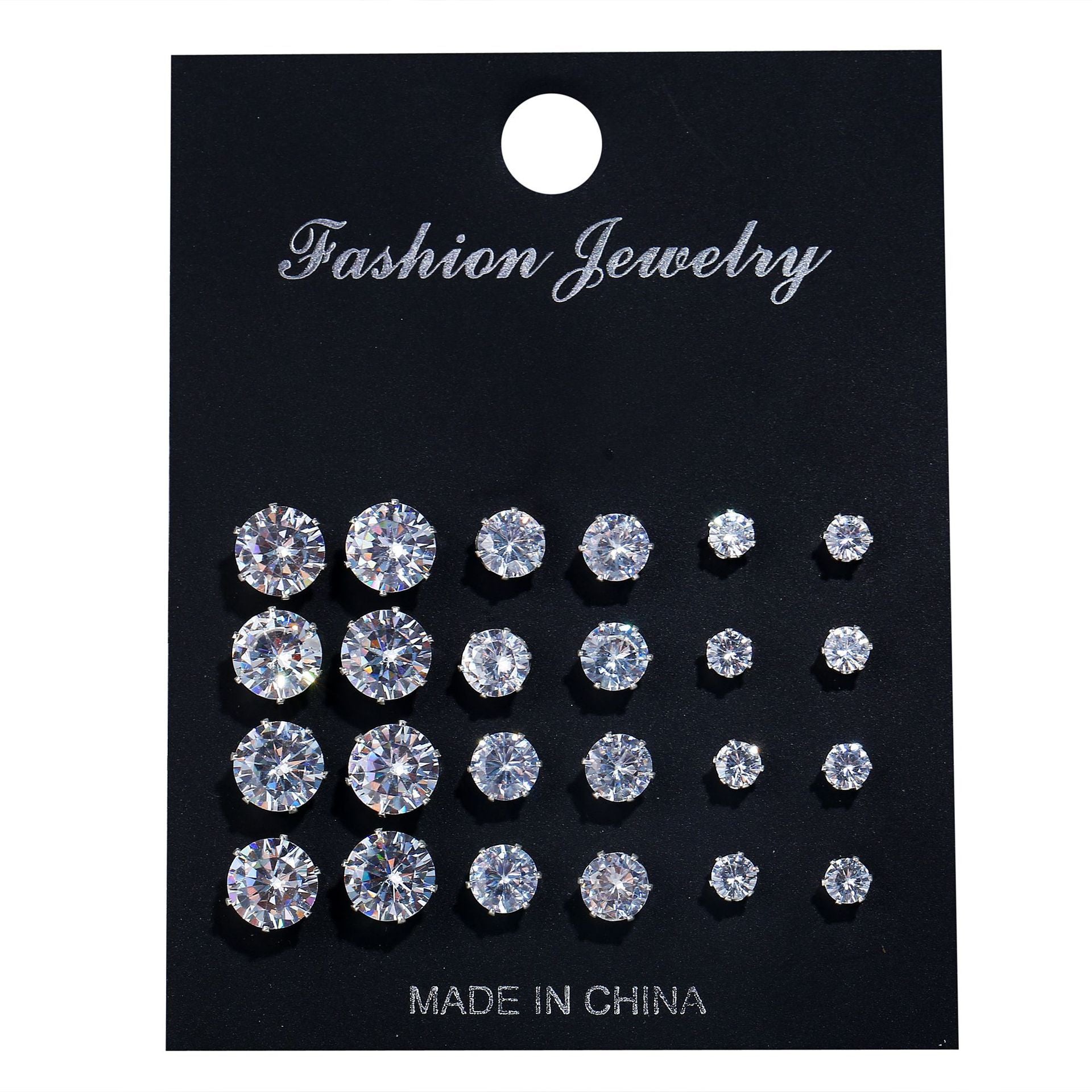 Vintage Geometric Crystal Zircon Pearl Stud Earrings Set - 15 Pairs